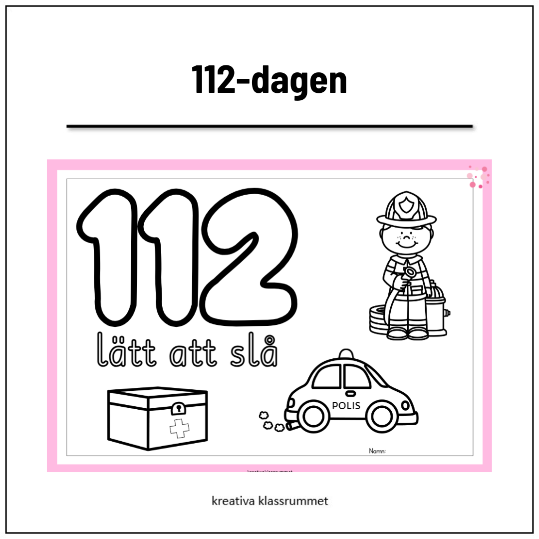 112-dagen firas 11/2 varje år. Här är ett arbetsblad att färglägga.