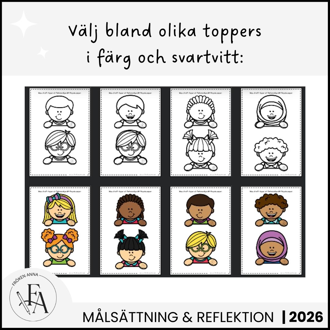 Skapa en inspirerande start på det nya året! Med ”2026 – Mål och Drömmar” kan barnen reflektera över sina mål, vad de vill lära sig och vad de vill förbättra. De färgglada toppers och möjlighet att designa egna visionstavlor gör aktiviteten både kreativ och personlig.