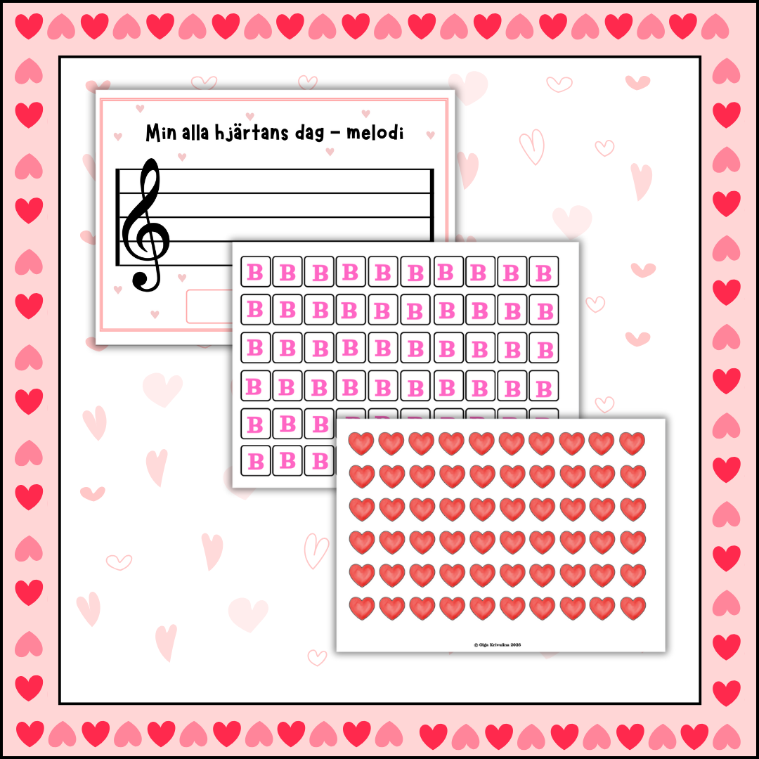 I denna uppgift får eleverna träna notläsning på ett lekfullt sätt och samtidigt skapa egna melodier med hjälp av material inspirerat av Alla hjärtans dag.