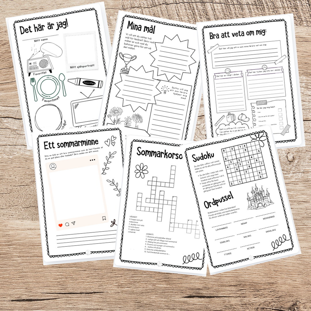 ”Äntligen dags för skolstart!” är ett häfte med blandade arbetsuppgifter passande inför skolstart. Dels utifrån mål, sommarminne, korsord, sudoku m.m.