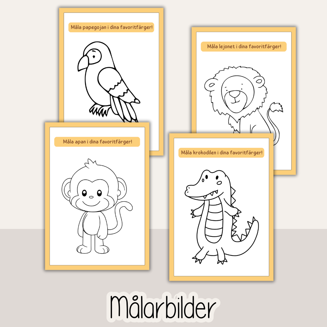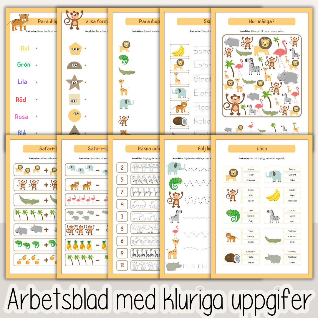 Häfte med 53 arbetsblad med temat Safari
