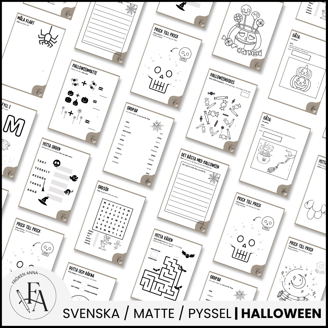 Gör Halloween ännu roligare med Fröken Annas spännande Halloweenhäfte! ? Denna aktivitetsbok är full av kreativa och lärorika övningar som passar perfekt för barn som vill fira Halloween med pyssel och klurigheter. Häftet innehåller 85 sidor med övningar, alla med ett skrämmande roligt Halloween-tema. ??️