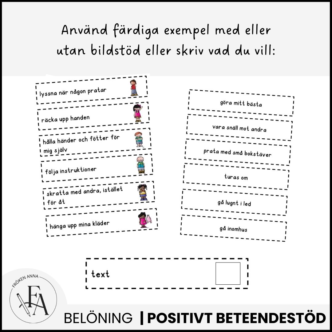 Använd som positivt beteendestöd för att motivera barnet att utföra önskade handlingar, förstärka goda beteenden eller utveckla specifika förmågor eller färdigheter.