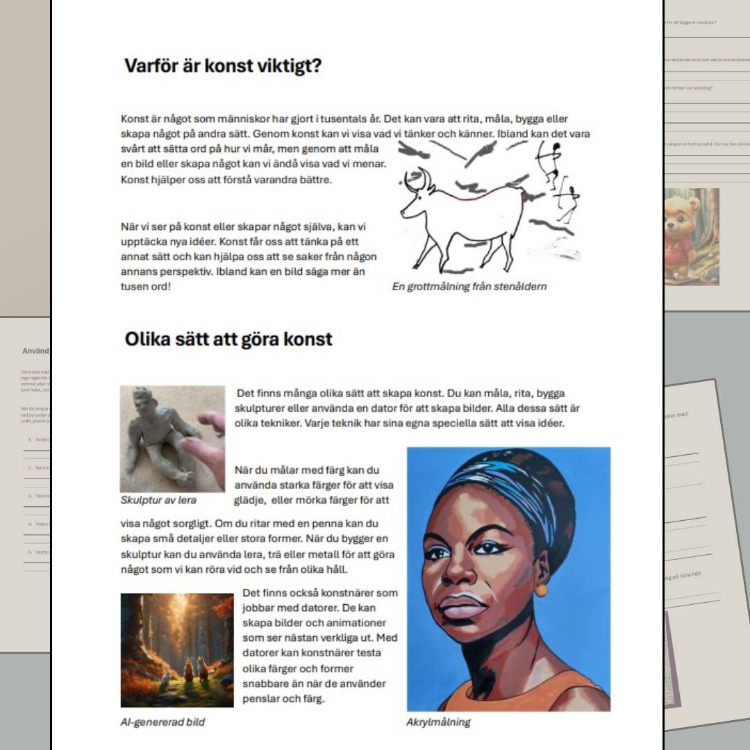 Häftet är idealiskt för vikarier eller lärare att använda med elever i låg- och mellanstadiet för att lära sig mer om konst. Perfekt att skriva ut och låta eleverna arbeta med tillsammans, individuellt eller klassvis.