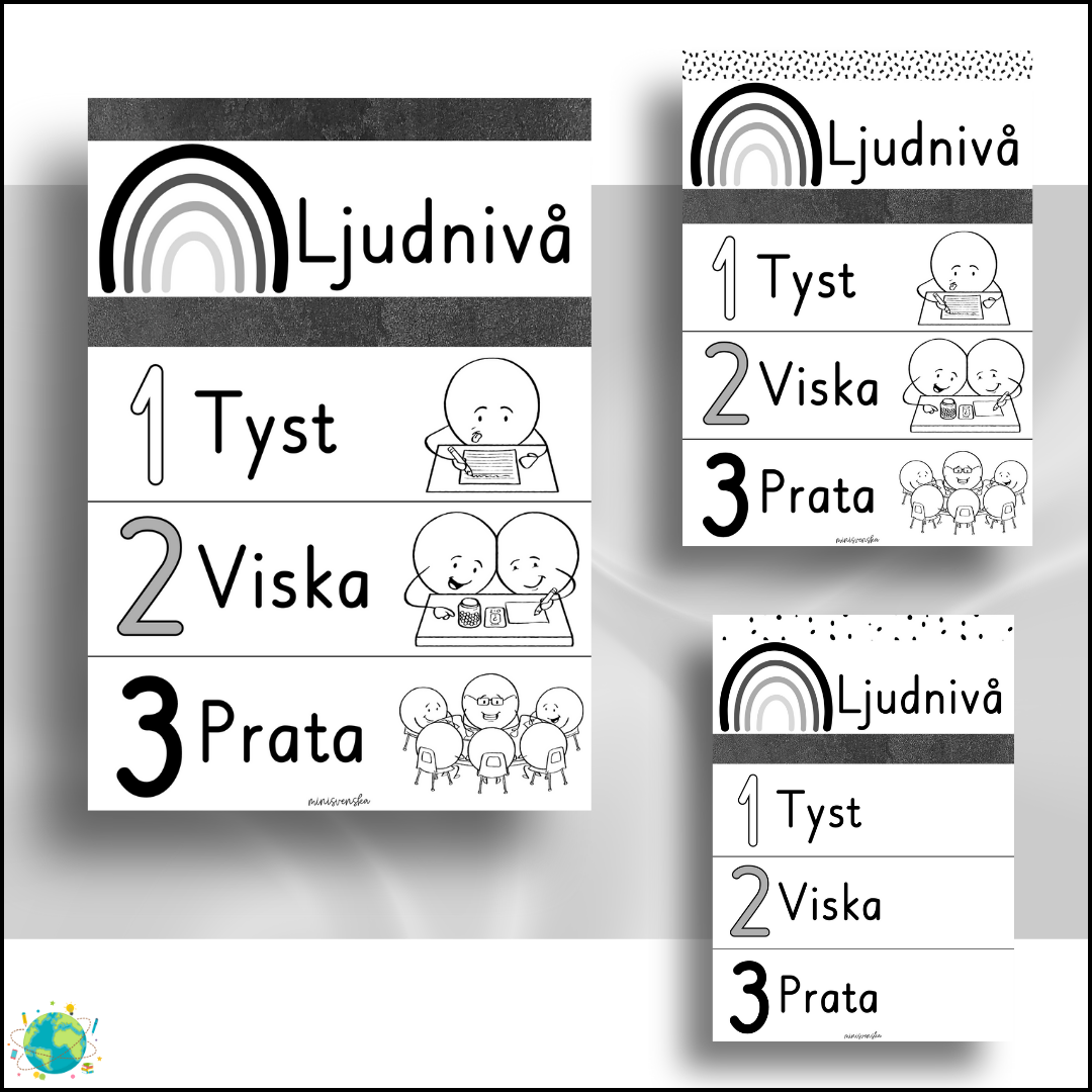 Struktur med visuellt stöd för klassrummet med temat: black and white.