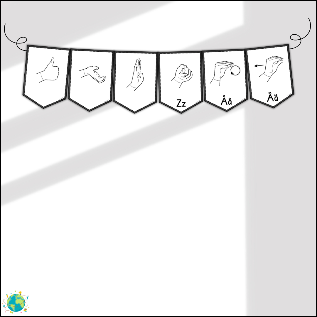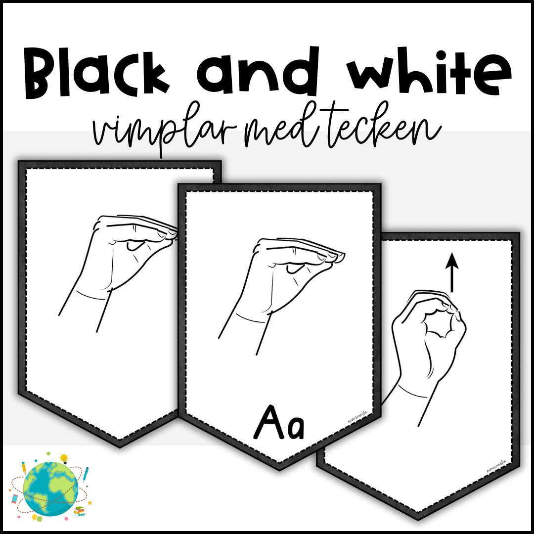 Vimplar med tecken i temat: Black and white. A4 PDF Alfabetet utan bokstäver Alfabetet med bokstäver