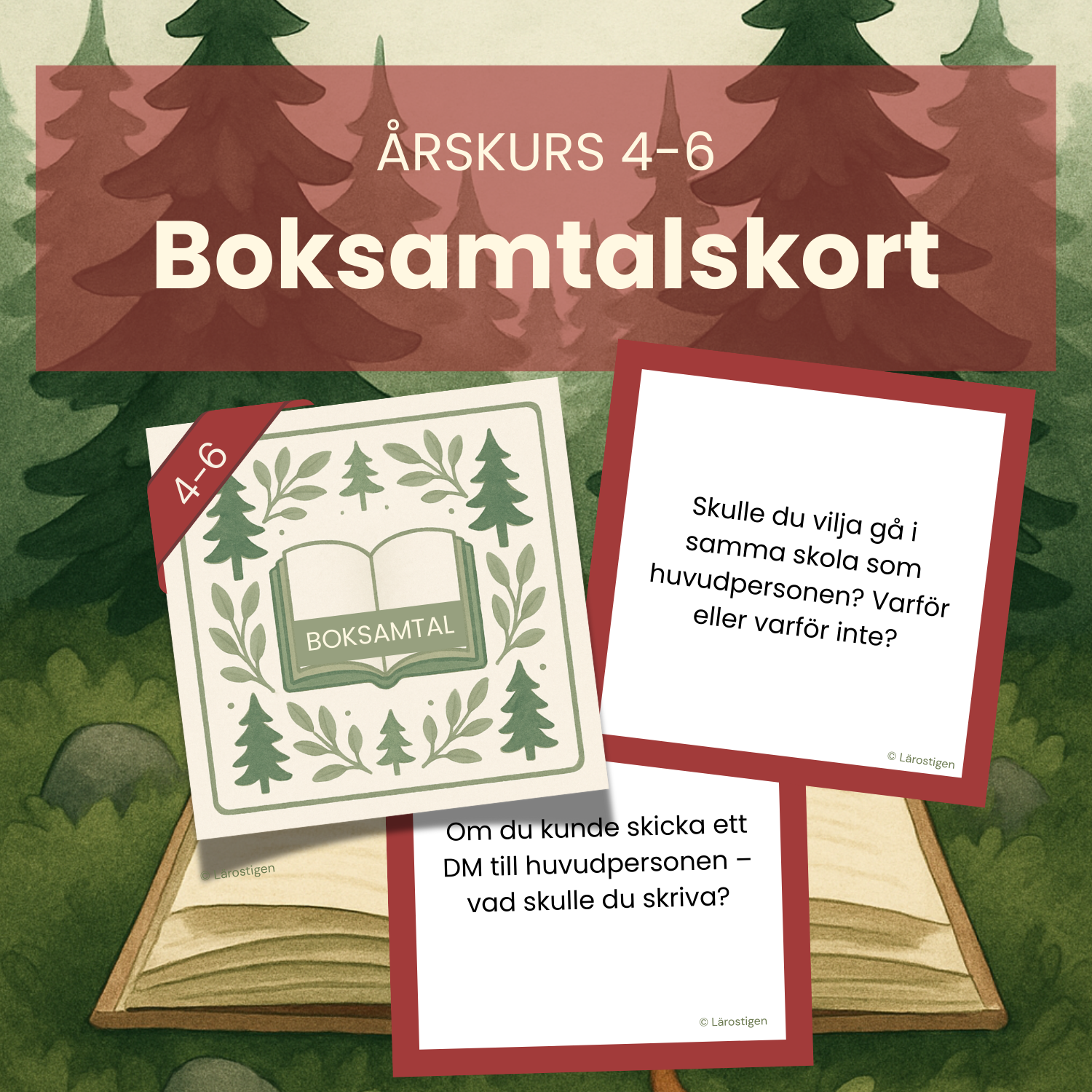 En serie boksamtalskort utformade för att väcka nyfikenhet, reflektion och samtal – oavsett var i boken eleverna befinner sig.