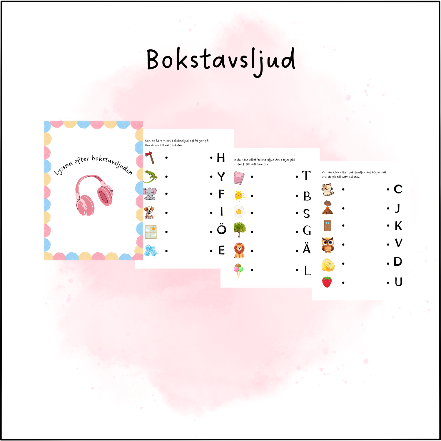 Hej! Här kommer ett lite mindre häfte om bokstavsljud. Säg ordet högt och lyssna efter första bokstavsljudet, vilken bokstav är det?
