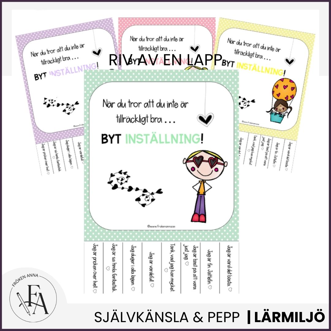Sätt upp på en strategisk plats (klassrummet, korridoren, ingången, personalrummet …) där du tror någon kan behöva peppas! Materialet finns i fyra olika färger och utföranden.
