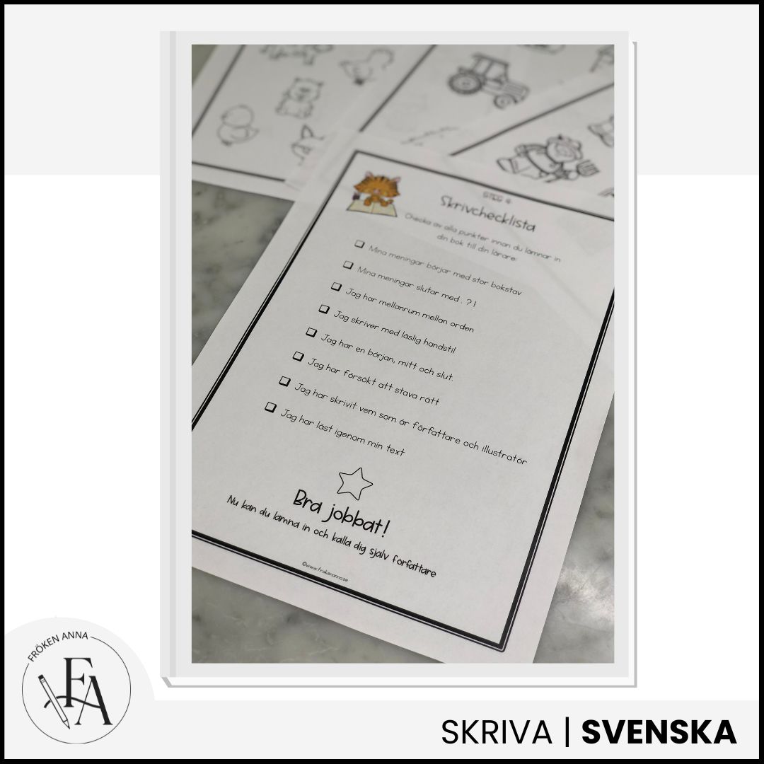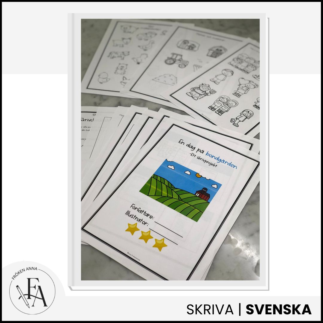 I skrivprojektet ”En dag på bondgården” får eleverna genom ett motiverande och kreativt arbetssätt ta sig igenom hela skrivprocessen från planering, skriva med röd tråd och kontrollera sitt eget skrivande.