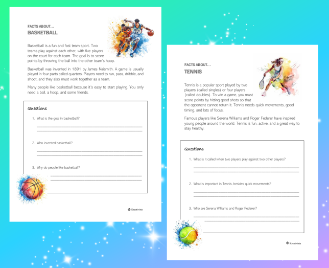 Texterna är korta och innehåller samma sorts fakta, vilket blir repetitivt och ger eleverna möjlighet att lära ord och fraser kopplat till sport.
