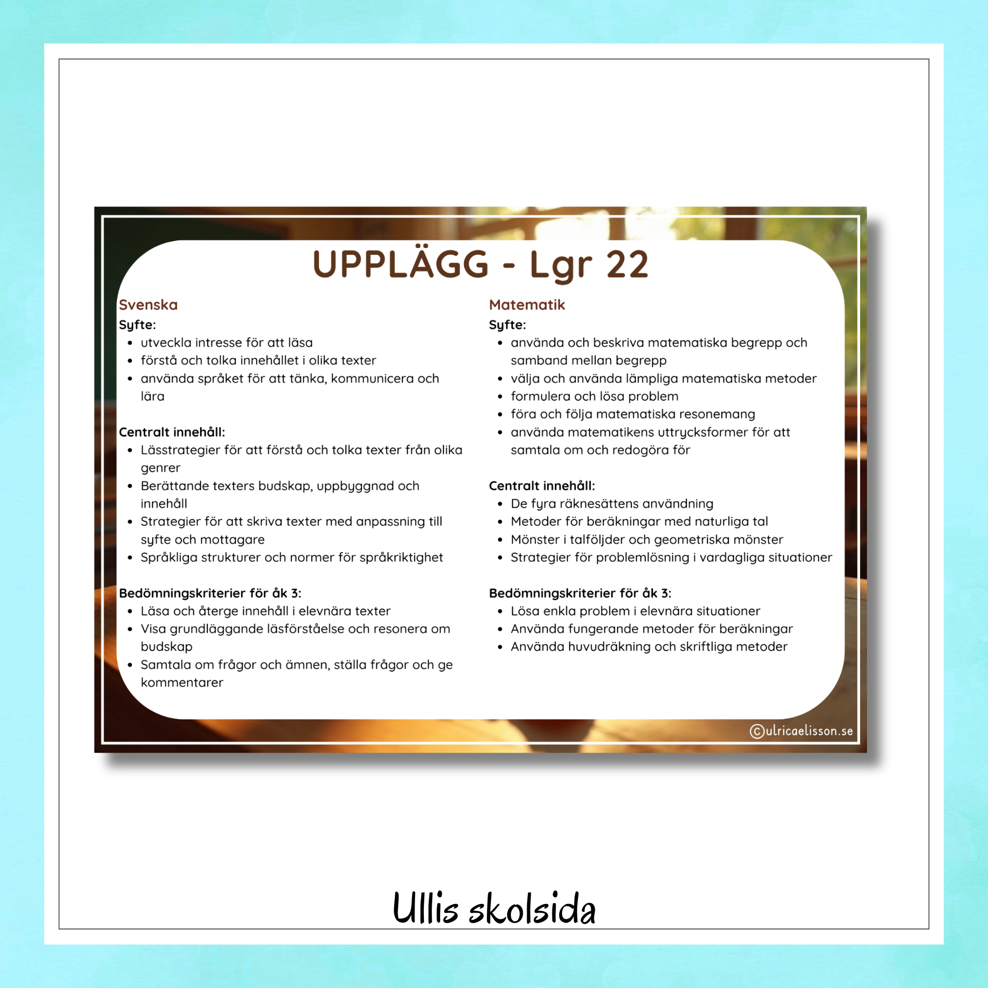 I materialet finns en tydlig koppling till LGR22 — med tränade förmågor i både svenska och matematik.