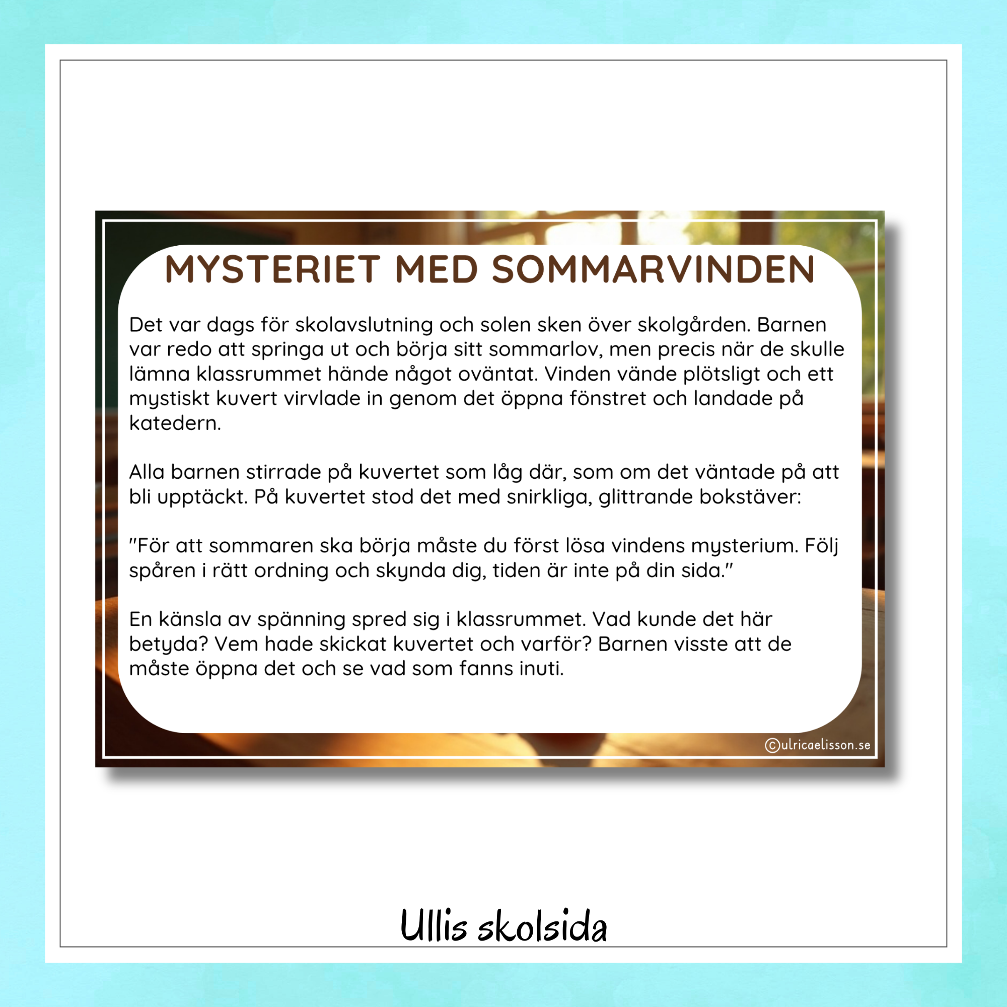 Perfekt aktivitet inför sommarlovet eller som en spännande läs- och problemlösningsövning!