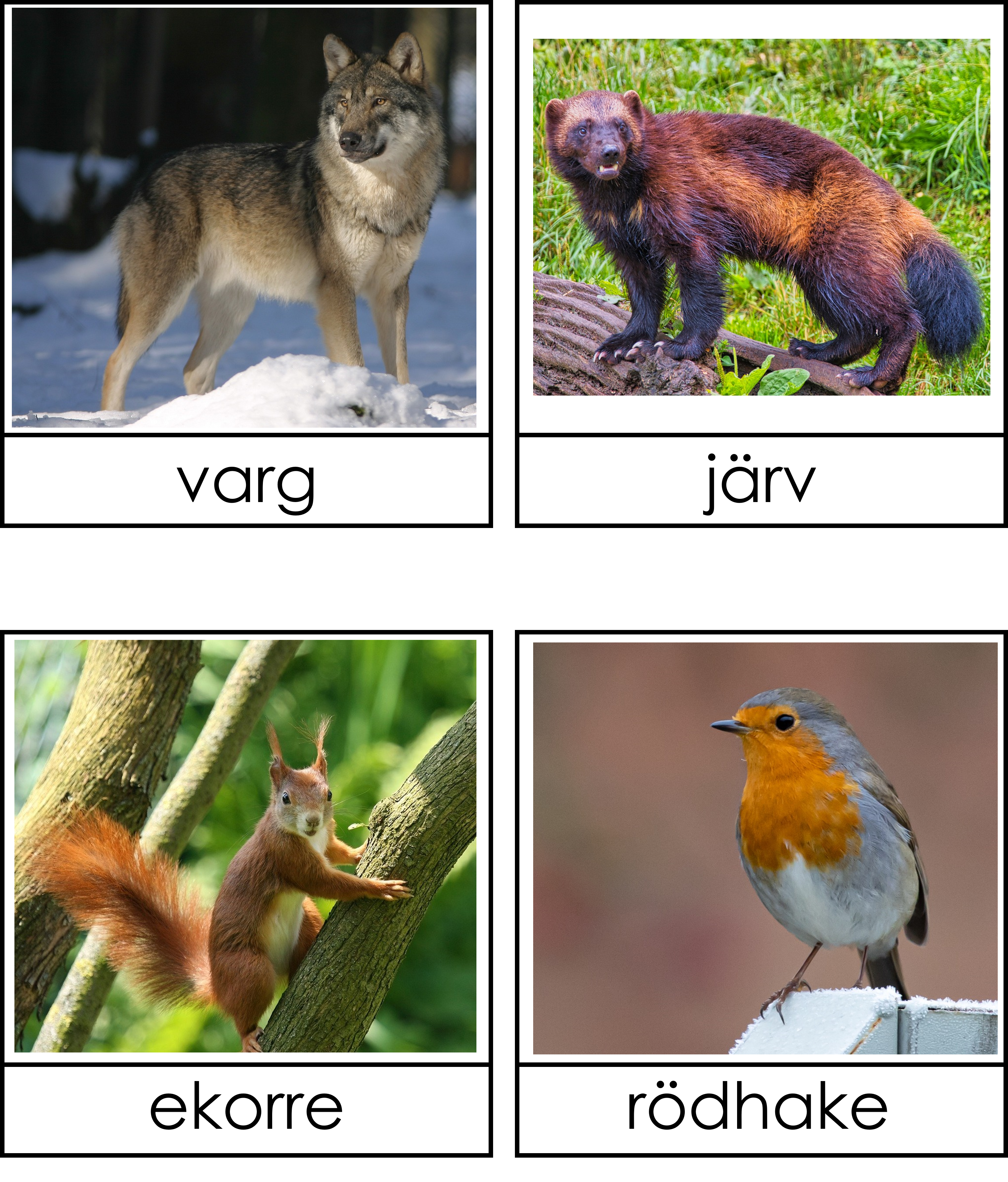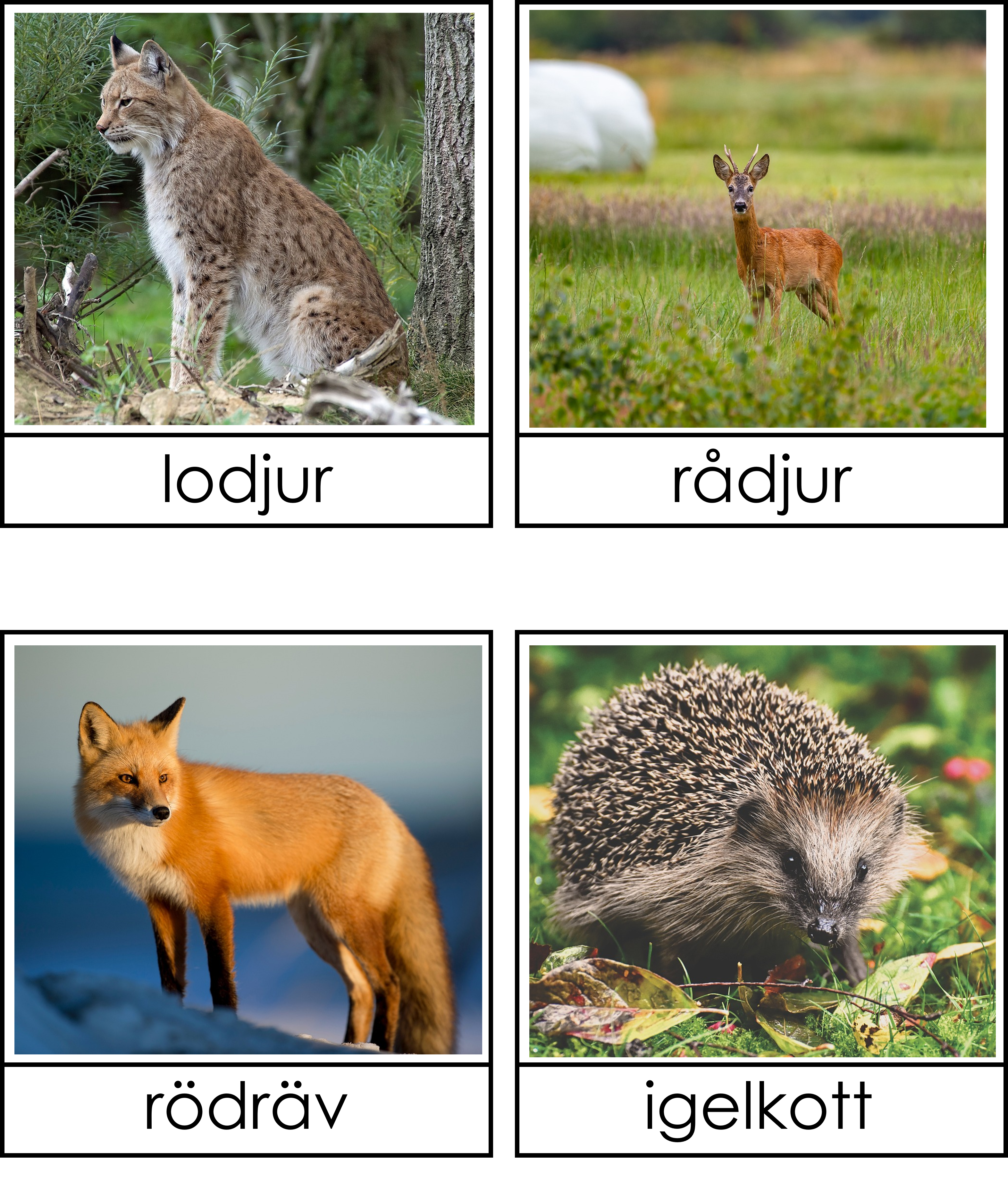 Materialet tränar på vilka djur som lever i Europa. Vissa djur finns endast i Europa men några finns även på andra ställen men är kända i Europa. Det finns material om djur från andra världsdelar och då kan man sortera vilka djur som tillhör vilken världsdel. Materialet är i 3 del. Skriv ut två exemplar och klipp isär bild och text på det ena och behåll de hela på det andra exemplaret så blir det även ett läsövningsmaterial.