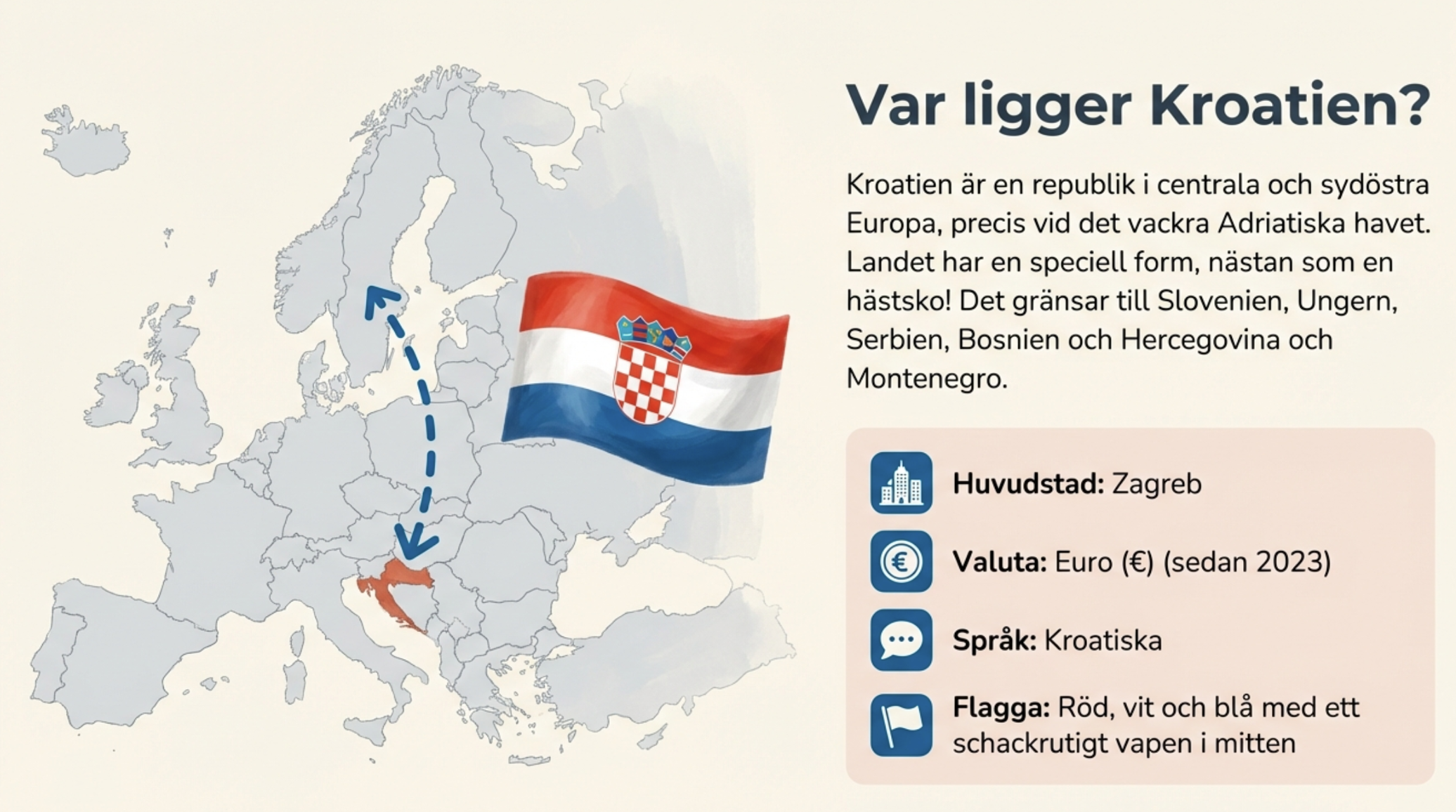 Det här PowerPoint-dokumentet ger en tydlig och lättförståelig introduktion till Kroatien, anpassad för elever i mellanstadiet. Materialet presenterar grundfakta om landets läge, huvudstad, flagga, språk, kultur, vardagsliv och några viktiga traditioner.