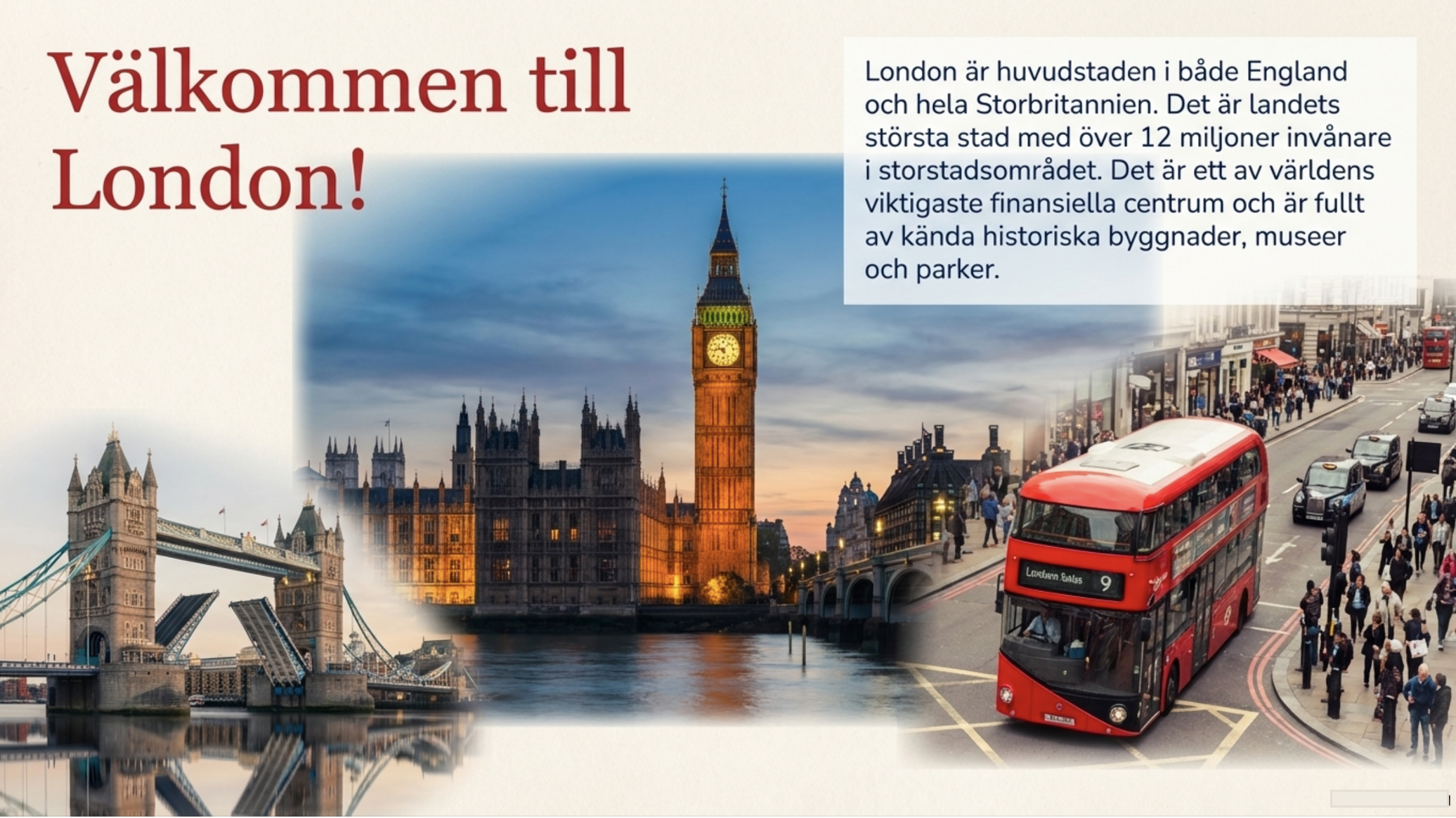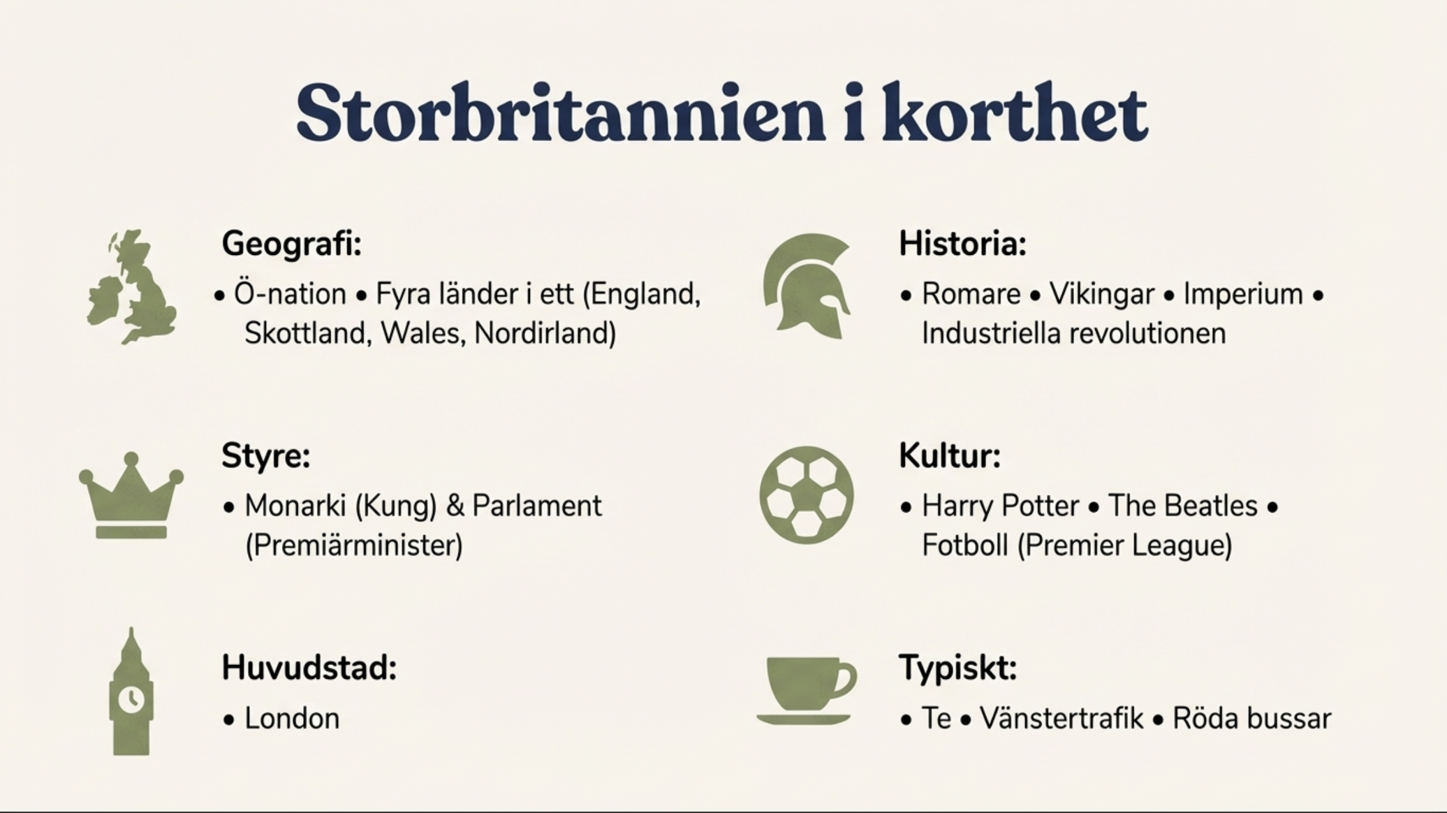 Ett superfint PowerPoint-dokumentet som ger en tydlig och lättförståelig introduktion till Storbritannien, anpassad för elever i mellanstadiet. Materialet presenterar grundfakta om landets läge, huvudstad, flagga, språk, kultur, vardagsliv och några viktiga traditioner.
