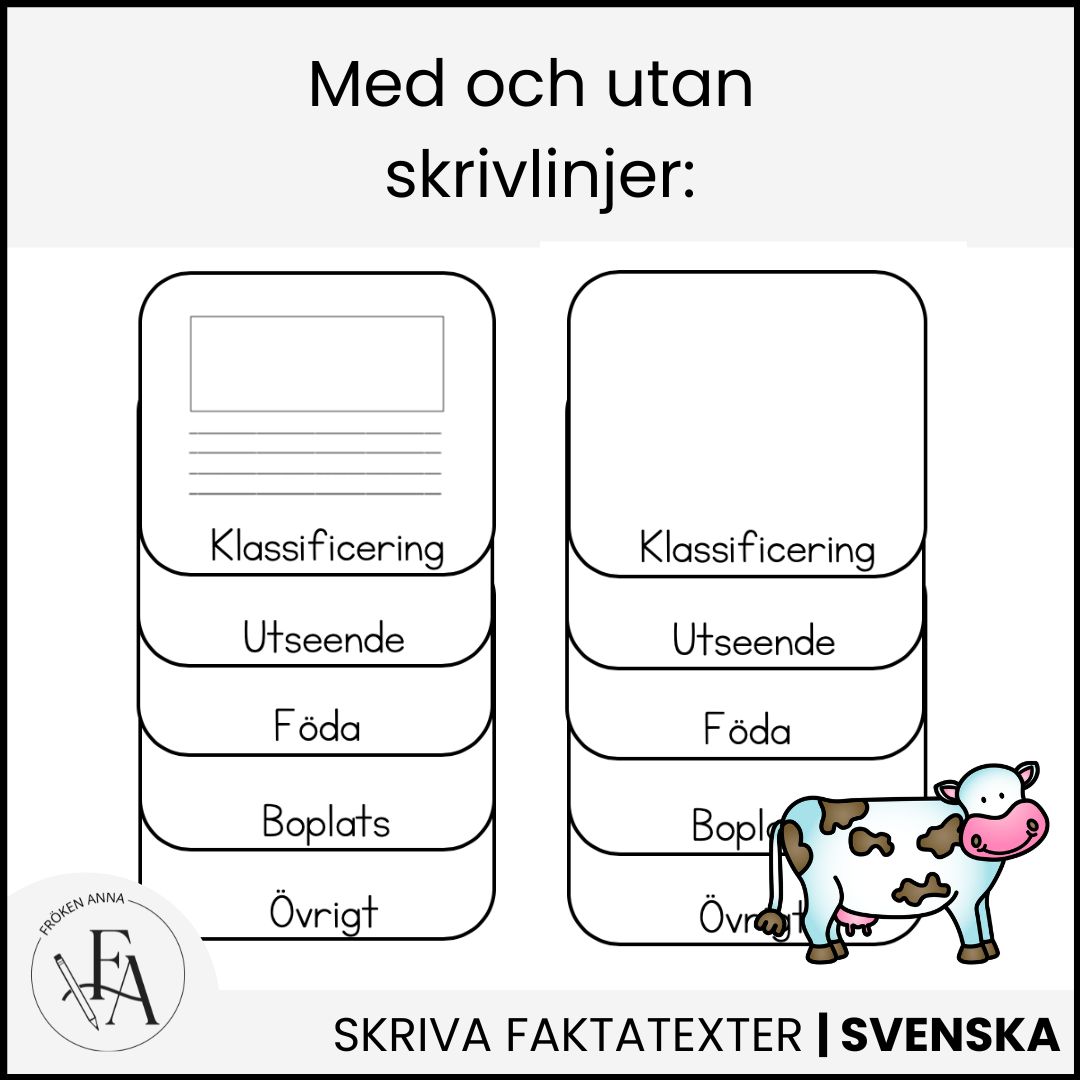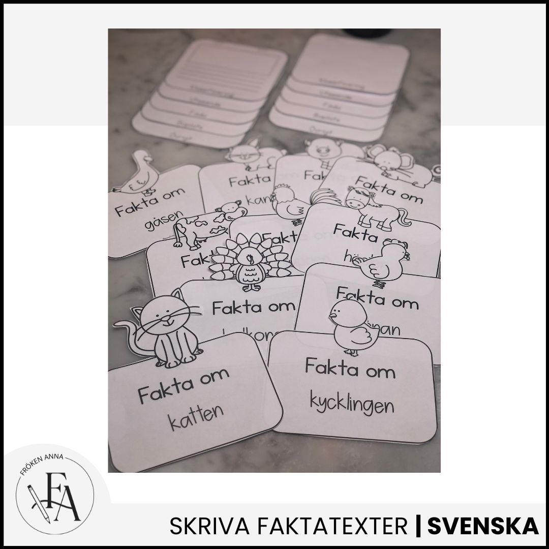 Eleverna väljer ett bondgårdsdjur och skriver sin egen faktatext utifrån tydliga rubriker. Flippboksformatet gör arbetet konkret och roligt, samtidigt som det ger en tydlig struktur som passar perfekt för yngre elever.