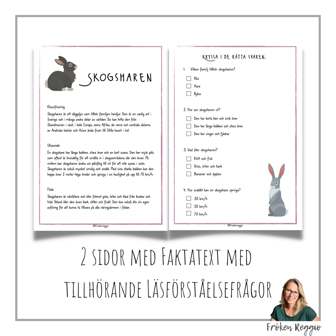 Låt eleverna fördjupa sina kunskaper genom att läsa en faktatext om skogsharen och utmana sig själva med de tillhörande läsförståelsefrågor.