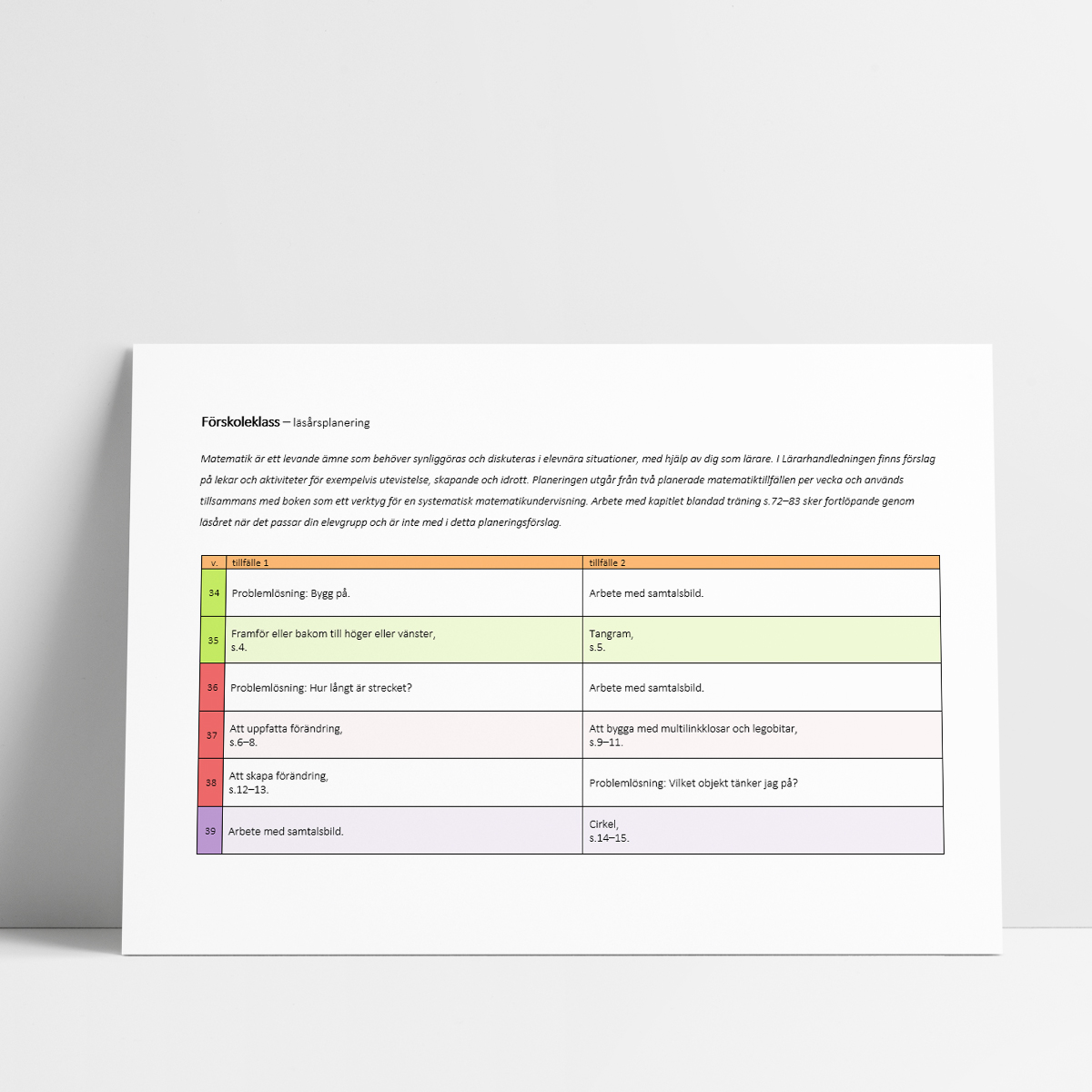 Favorit matematik – läsårsplanering förskoleklass