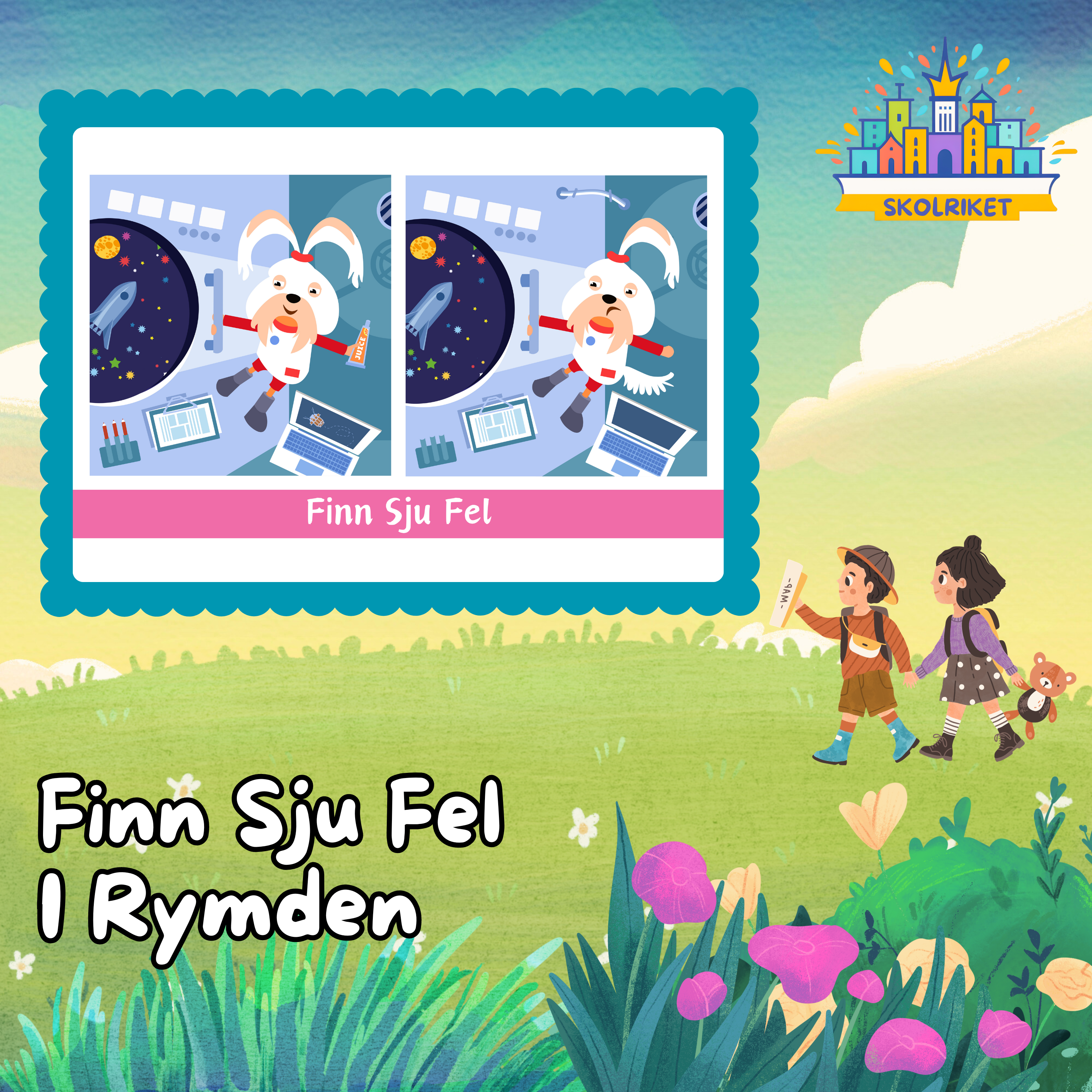 Färgglad och fantasifull bild där eleven får hitta sju skillnader.