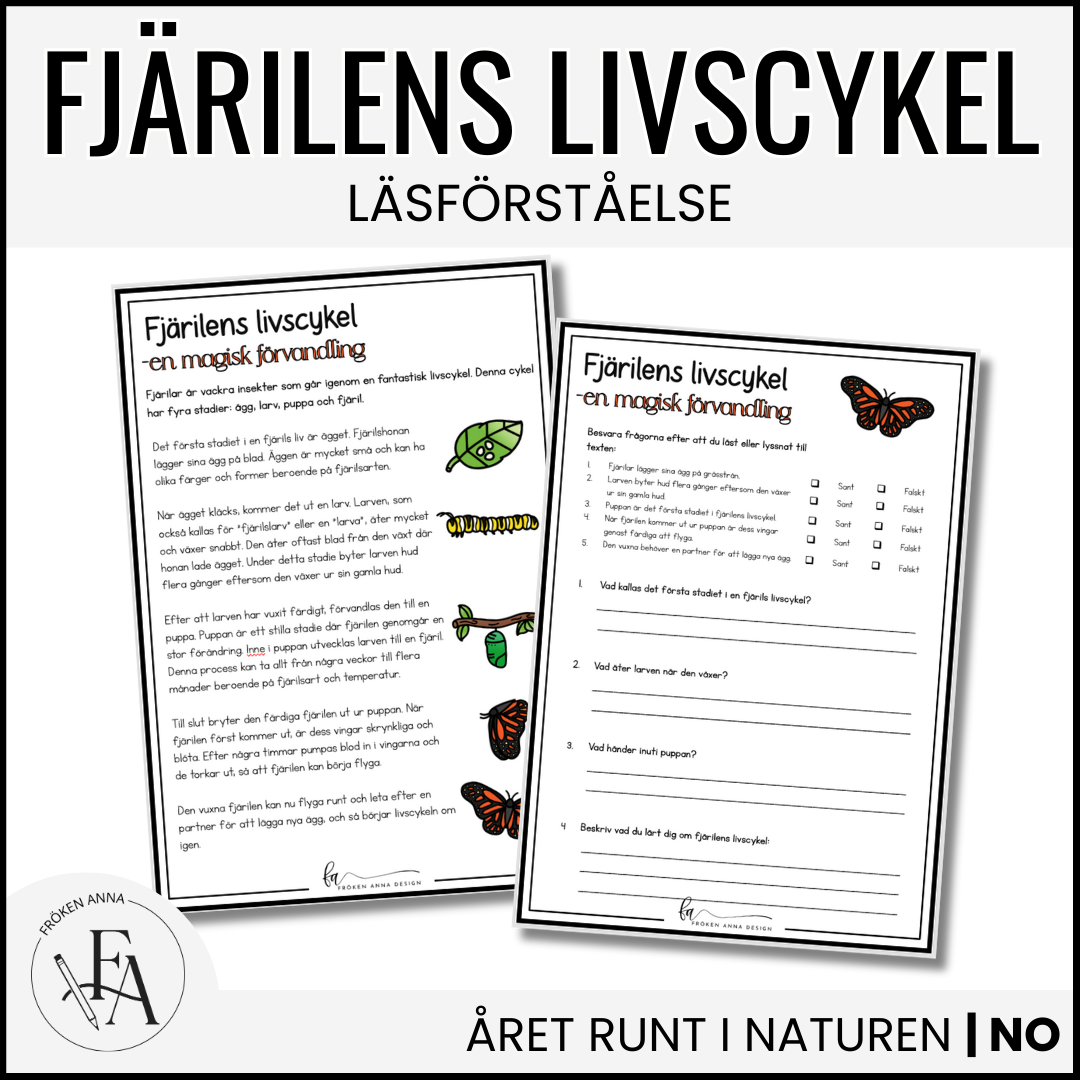Stort paket med allt du behöver när du ska jobba med fjärilens livscykel och delar: Följande ingår: