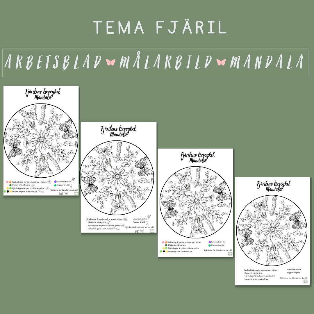 Läs och färglägg mandalan om fjärilens livscykel. Passar även yngre barn/elever då det finns bildstöd. Kommer i fyra olika nivåer, från text och bild till enbart text.