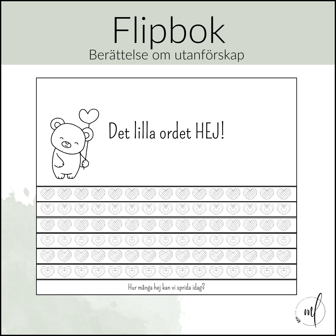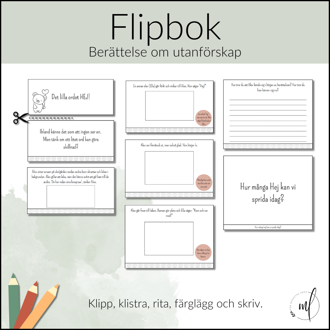 En flipbok där du får möta Alex som känner sig utanför på rasten. Berättelsen startar med att Alex känner sig ensam, han får sedan ett Hej av Ella som bjuder med Alex i leken. I berättelsen beskrivs hur Alex känner sig och eleverna får reflektera kring vad en enkelt Hej kan göra för någon.