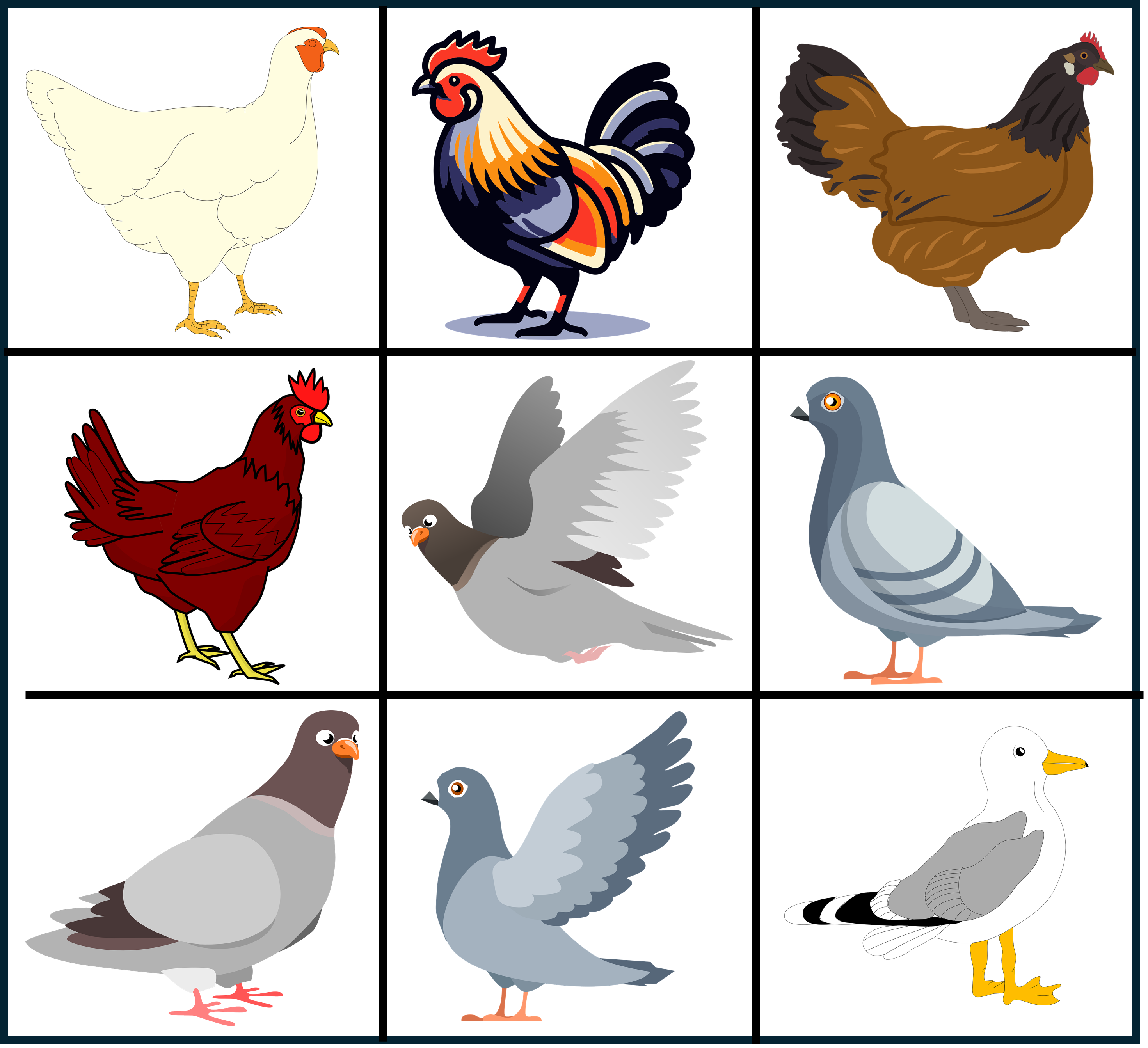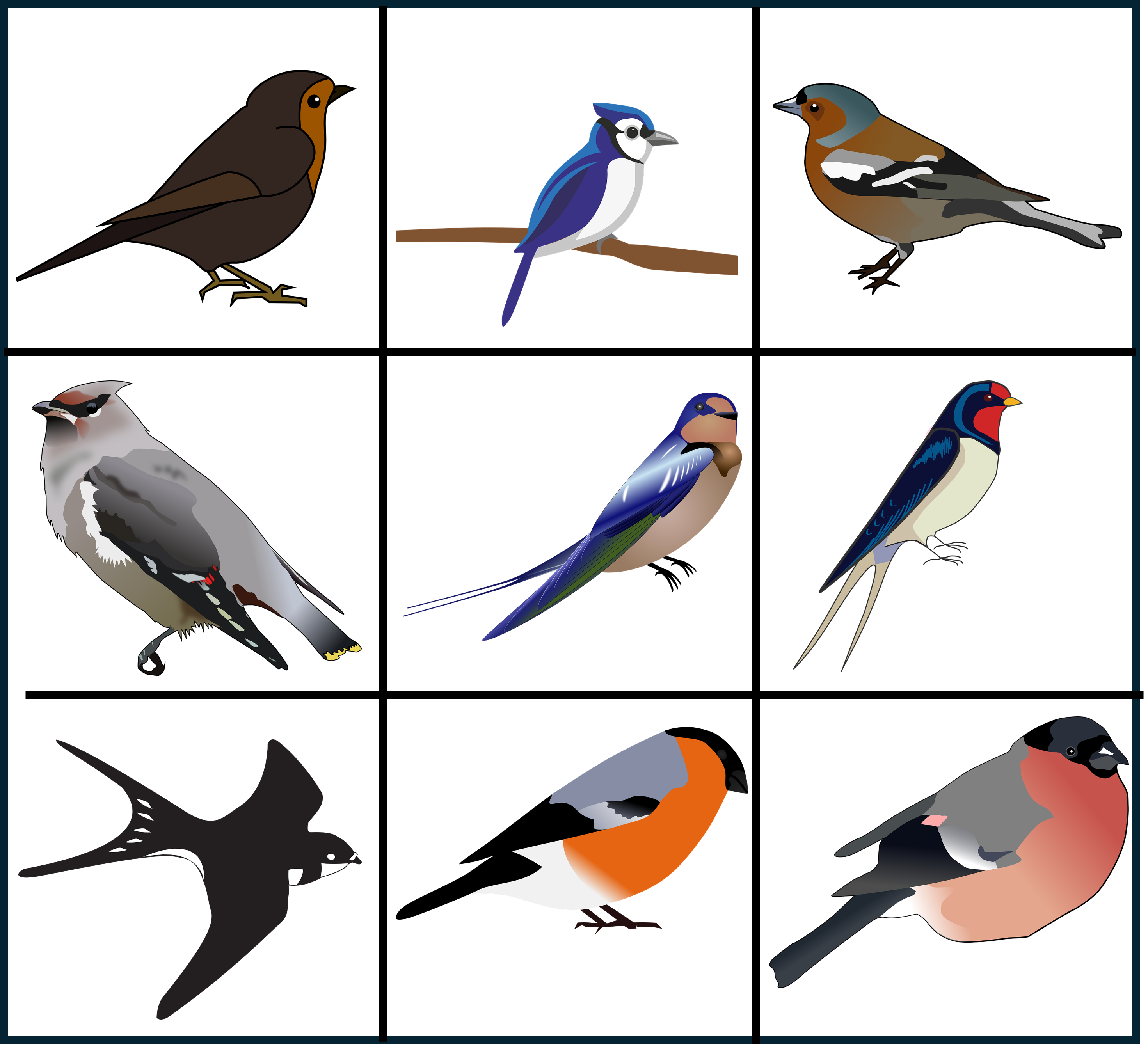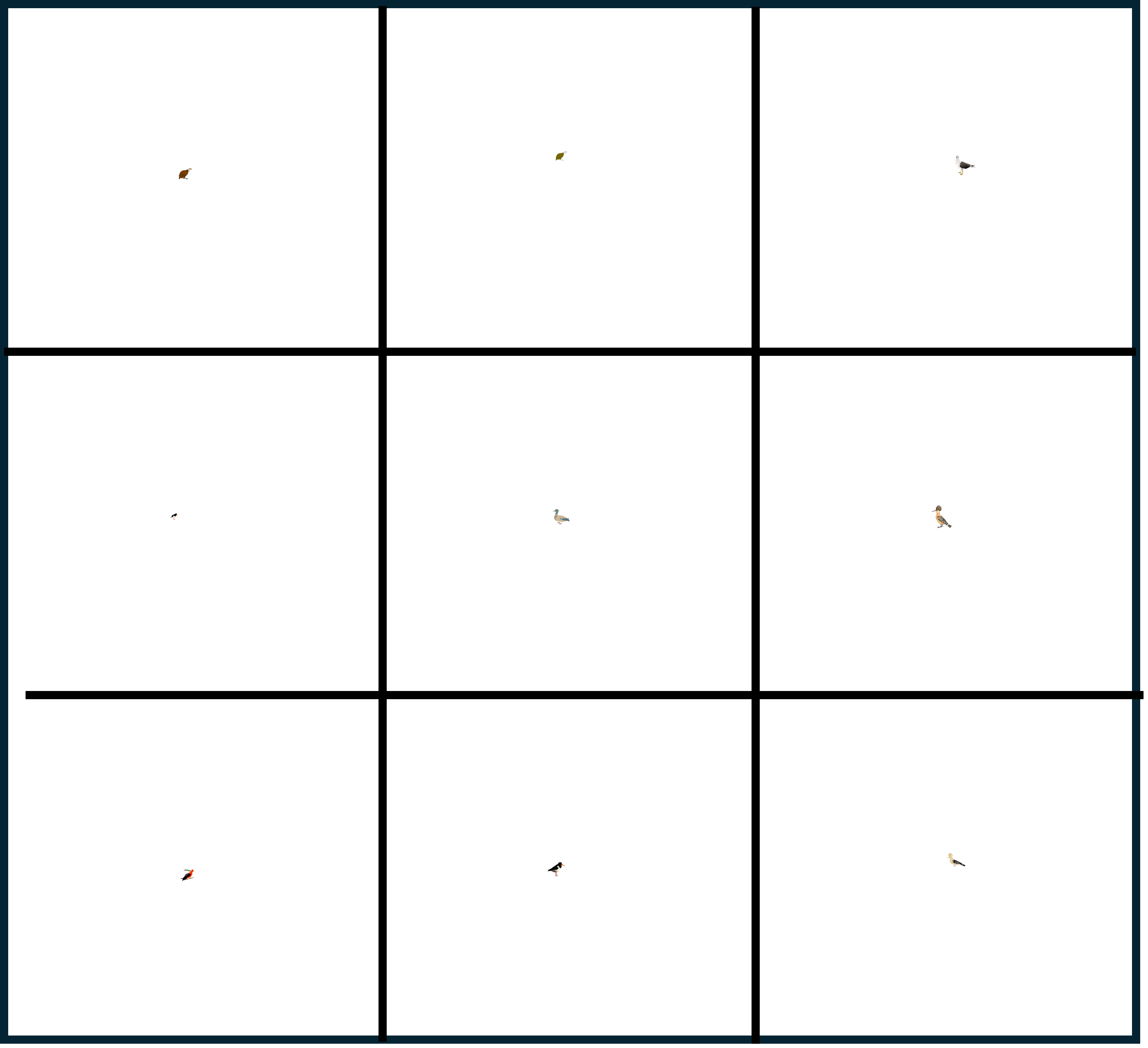 Materialet innehåller 9 stora brickor och 81 kort med små fåglar.