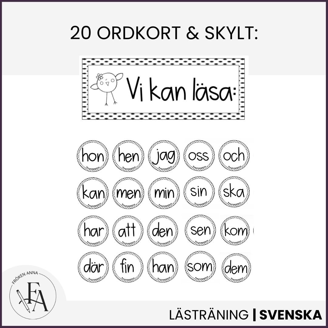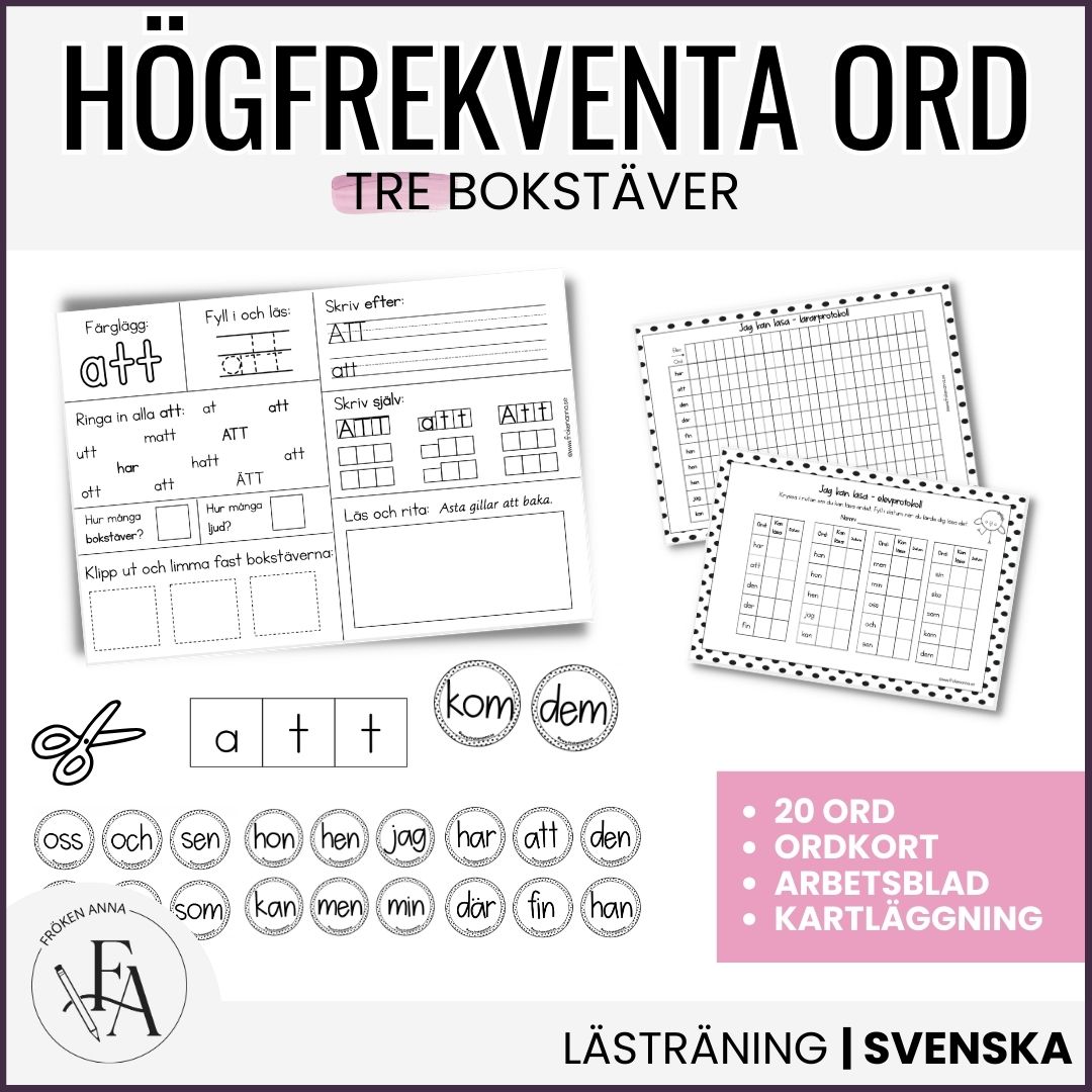 Högfrekventa ord (tre bokstäver) hjälper eleverna att automatisera läsning och igenkänning av vanliga högfrekventa ord i den tidiga läs- och skrivinlärningen.