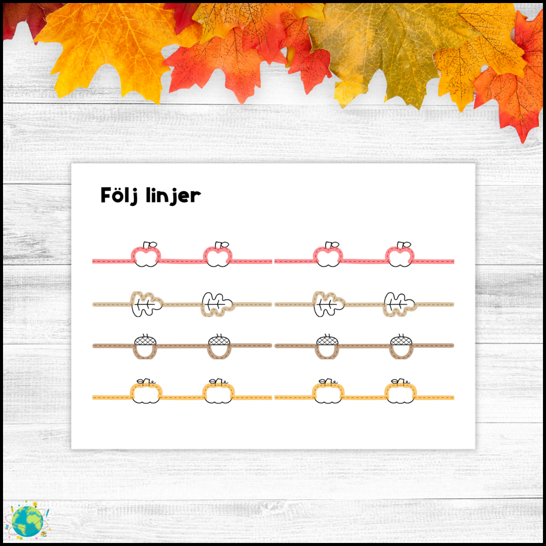 Träna på att följa linjer med höst-tema.