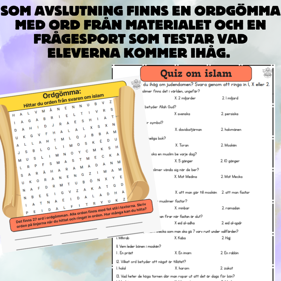 OBS: Detta material finns också att köpa i ett samlingspaket med arbetshäften om judendom, kristendom och islam.