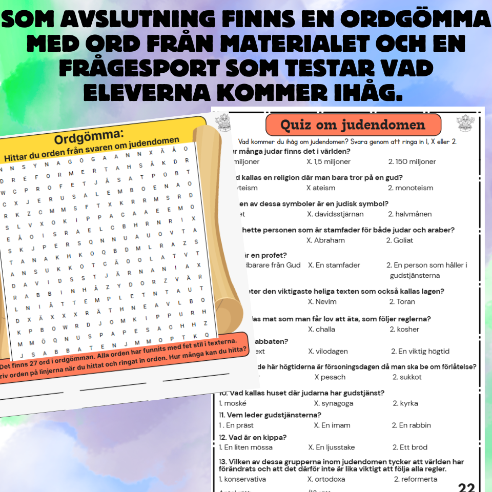 anpassad undervisningarbetshäftejudendomenreligionvärldsreligionerna