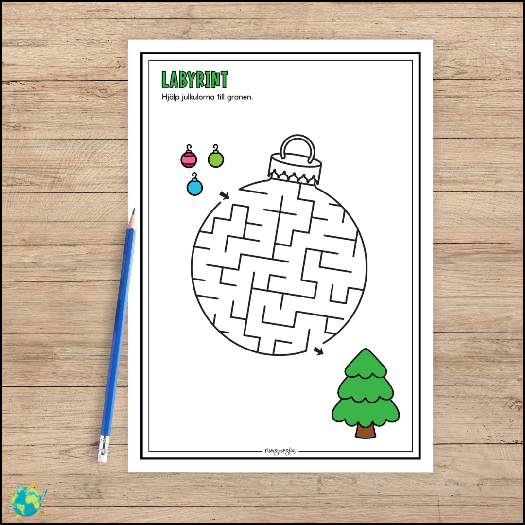 Eleverna fÄr hjÀlpa julkulorna att hitta vÀgen till granen, en rolig aktivitet som trÀnar fokus, logiskt tÀnkande och problemlösning pÄ ett lekfullt sÀtt.
