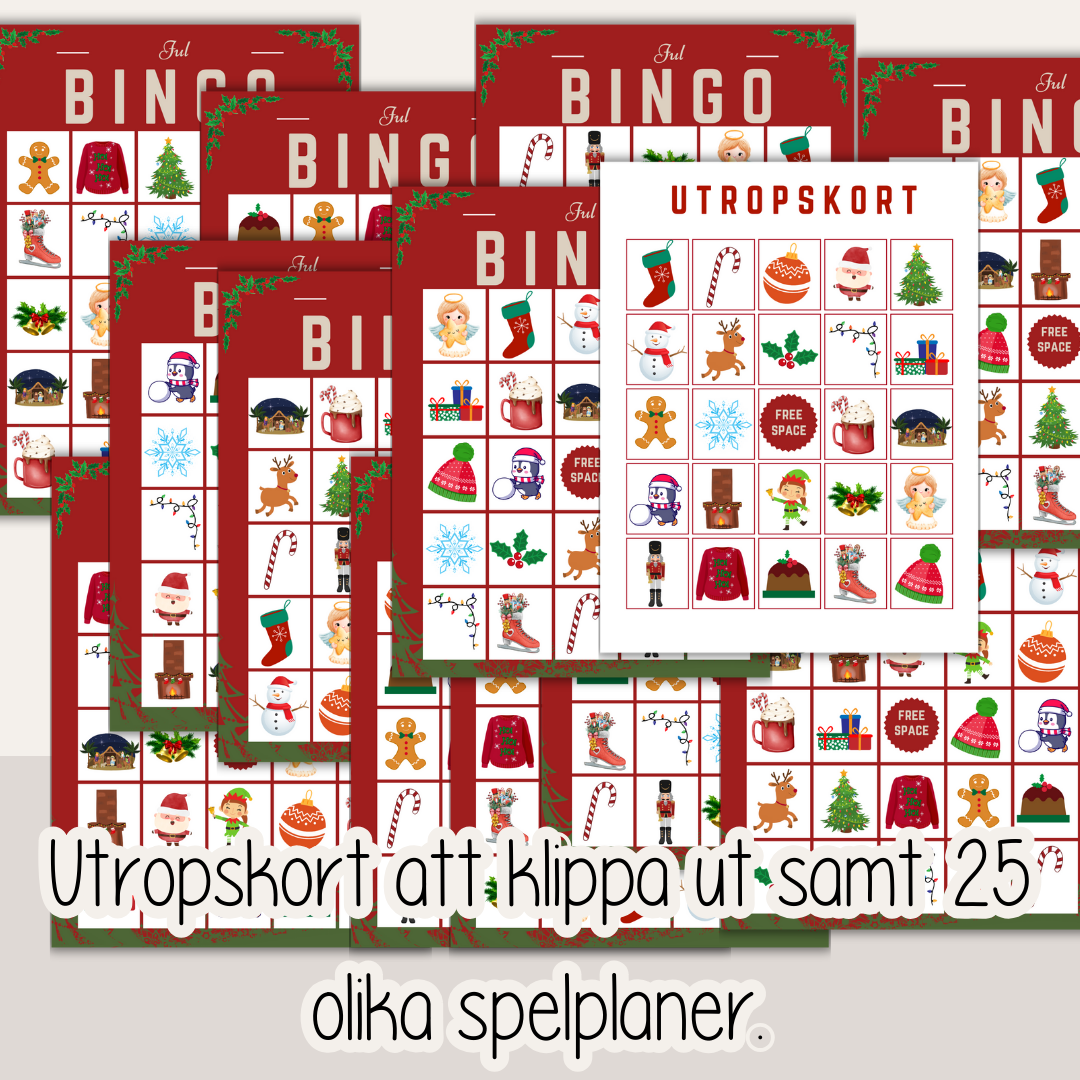 Spela Bingo med dessa julfigurer. Materialet innehåller instruktioner, utropskort samt 25 olika spelplaner. Levereras som en PDF.
