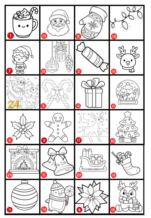 Räkna ner till julafton genom att färglägga en ruta varje dag.