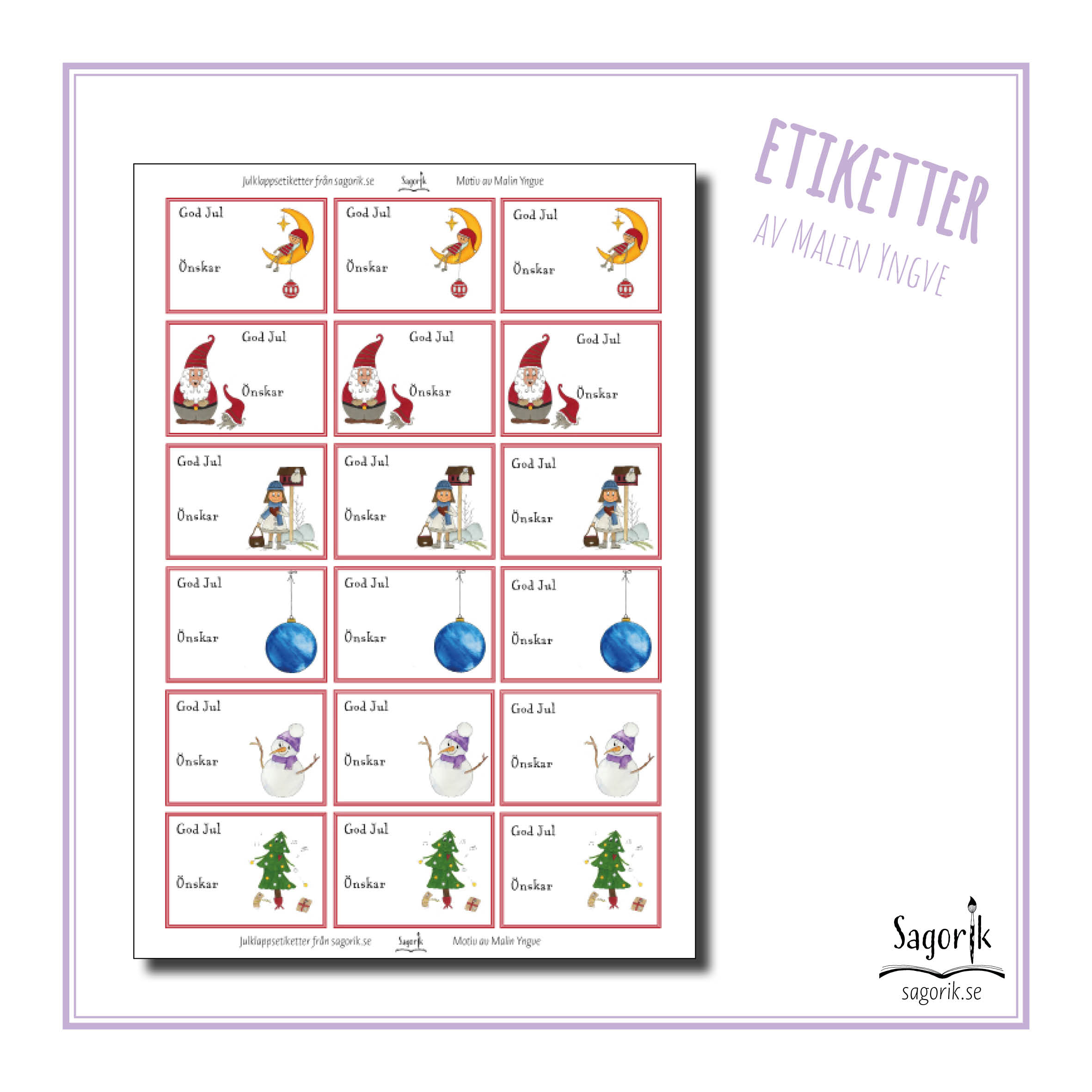 Julklappsetiketter med akvarellmotiv av Malin Yngve.
