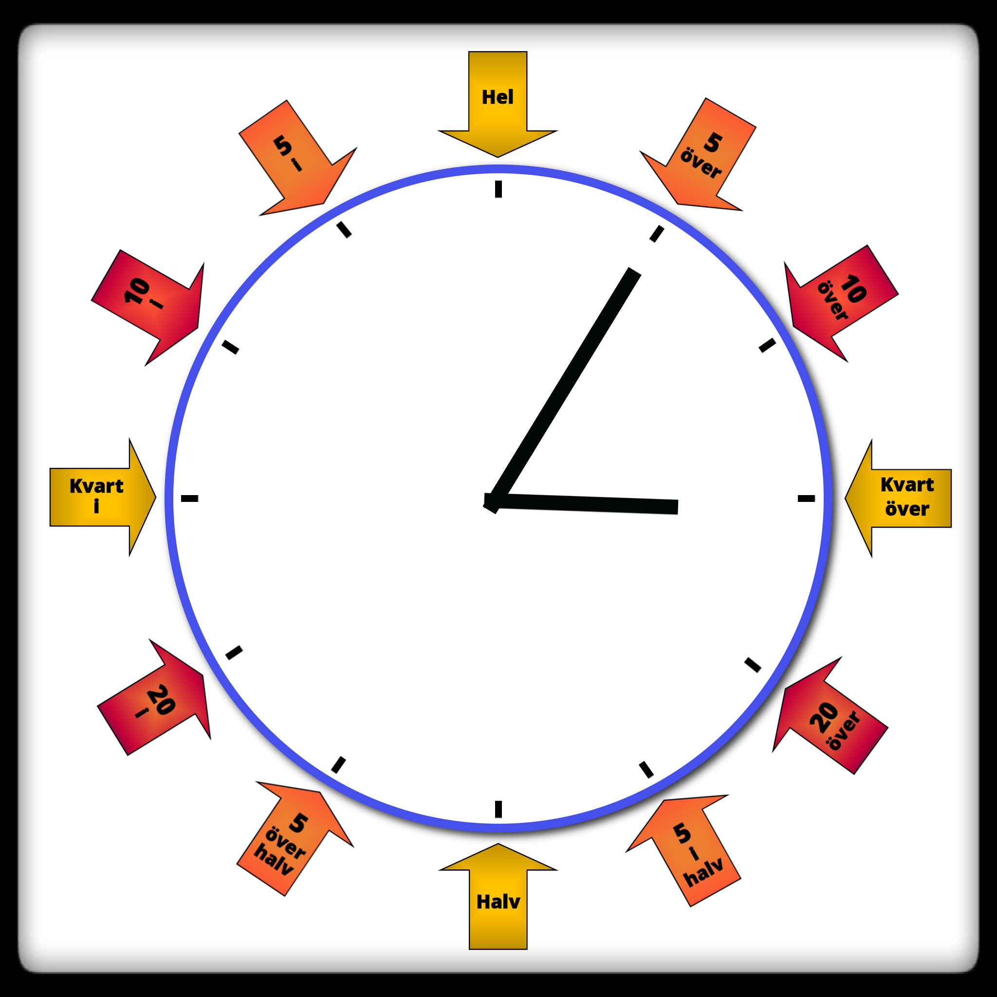 OBS! Det är bra om eleverna kan den analoga klockan på svenska innan de ger sig på den engelska, då man säger lite annorlunda vid halvtimmarna.