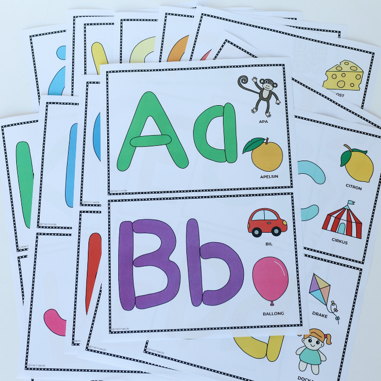 Träna på alfabetet med lera. Innehåller bokstäver Aa-Öö (versaler och gemener). Till varje bokstav finns tillhörande motiv som börjar på bokstaven.