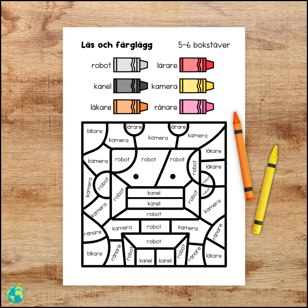 I det här materialet tränar eleverna på att läsa korta ord med 5-7 bokstäver på ett kreativt sätt.