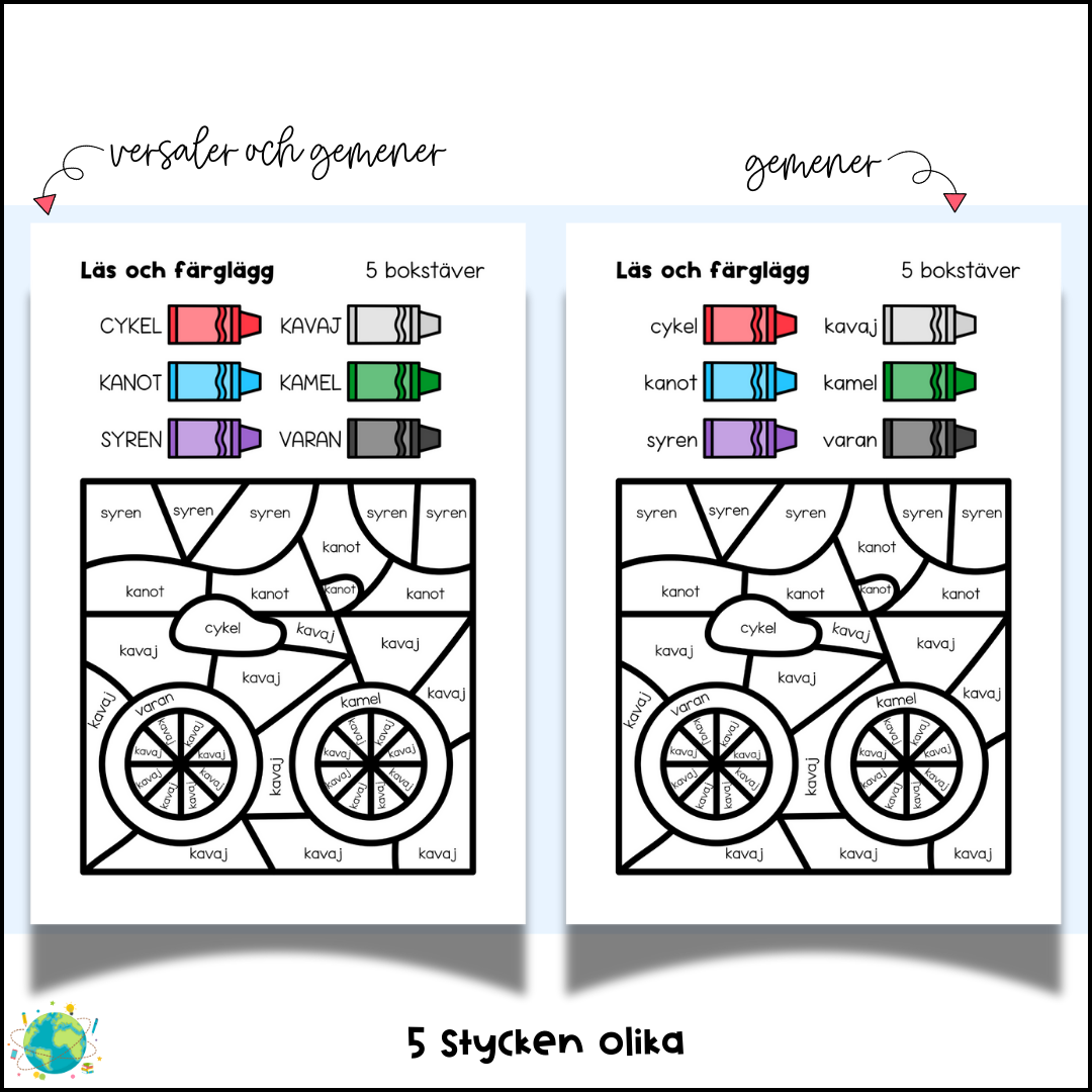 • Läs och färglägg 5-7 bokstäver, versaler och gemener
