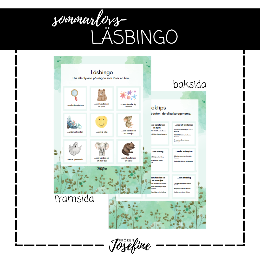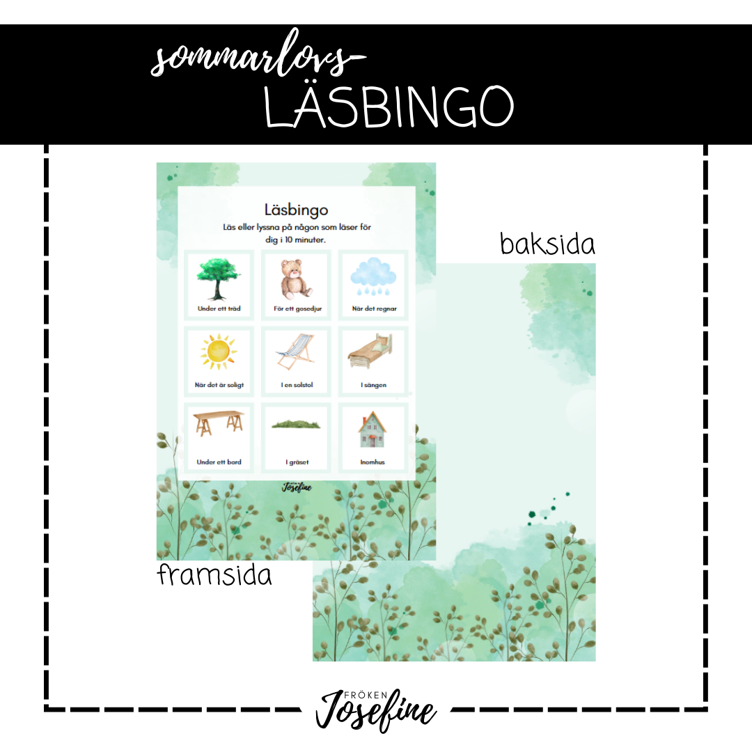 Ett där barnen ska läsa 10 minuter på olika platser och ett där de ska läsa olika typer av böcker. På baksidan finns tips på böcker som passar till varje kategori (att läsa själv eller bli läst för).