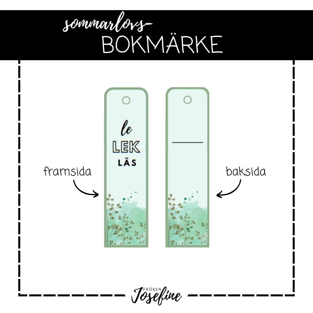 Innehåller också ett bokmärke med citatet ”Le, lek, läs”.