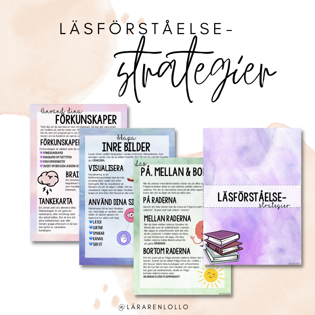 De olika läsförståelsestrategierna samlade i ett häfte! Häftet är utformat så att varje strategi kan hängas upp som en plansch i klassrummet. De strategierna som finns med i häftet är: