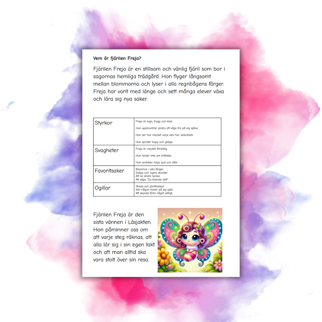 Eleverna turas om att dra kort och läsa orden högt. Så länge de drar ordkort får de fortsätta sin tur. När stoppkortet med Fjärilen Freja dyker upp avslutas turen direkt, vilket skapar spänning och lekfullhet utan att spelet blir stressande.