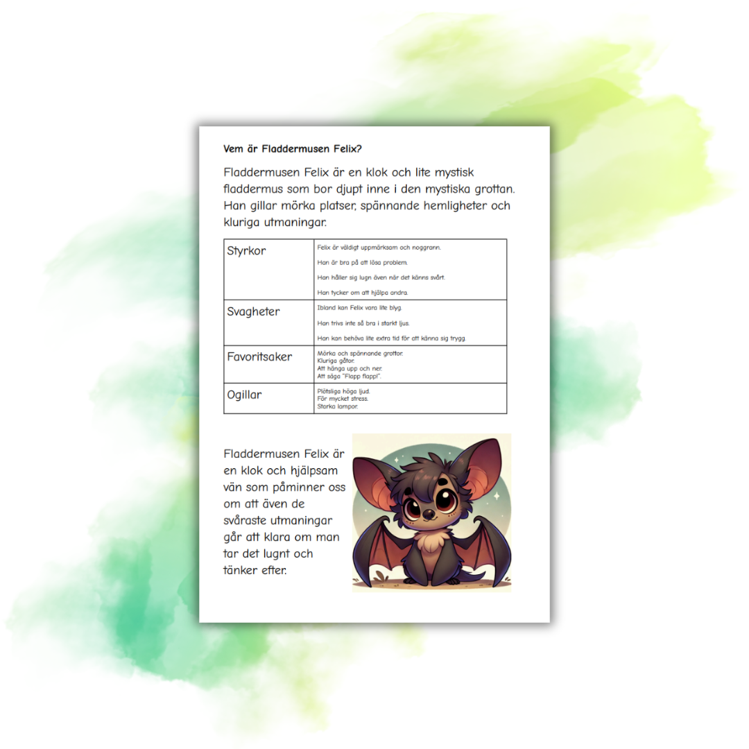 Stoppkort med karaktären Fladdermusen Felix
