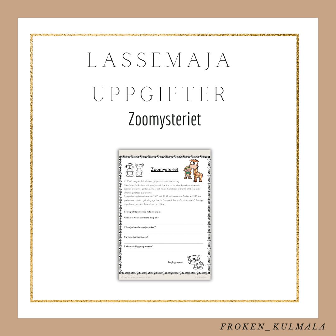 Följ med Lasse och Maja när de löser olika mysterier. Det rekommenderas att man läser boken Zoomysteriet. För att arbeta med arbetsbladet behöver man dock inte ha läst boken.