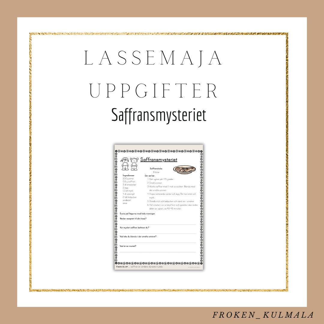 Följ med Lasse och Maja när de löser olika mysterier. Rekommenderas att läsa boken Saffransmysteriet. Arbetsbladet går att arbeta med utan att läst boken.