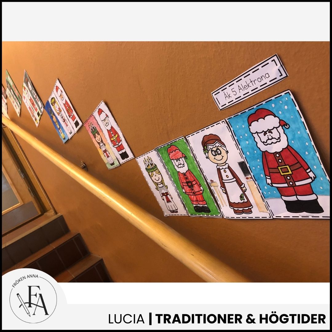 Skapa ett lååångt luciatåg tillsammans i klassen (eller hela skolan) och dekorera en livlös korridor eller vägg.