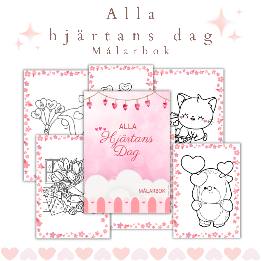 Målarbok på 16 sidor med alla hjärtans dagtema.