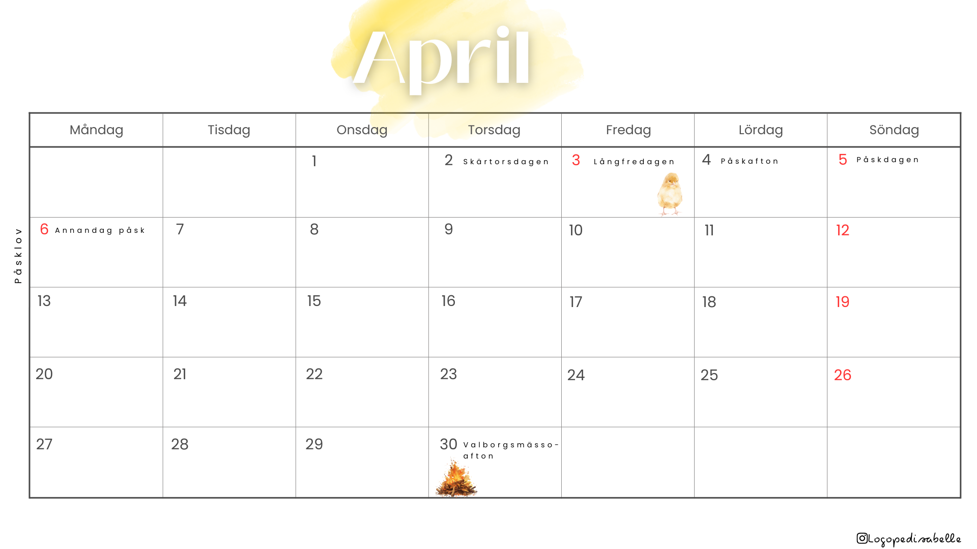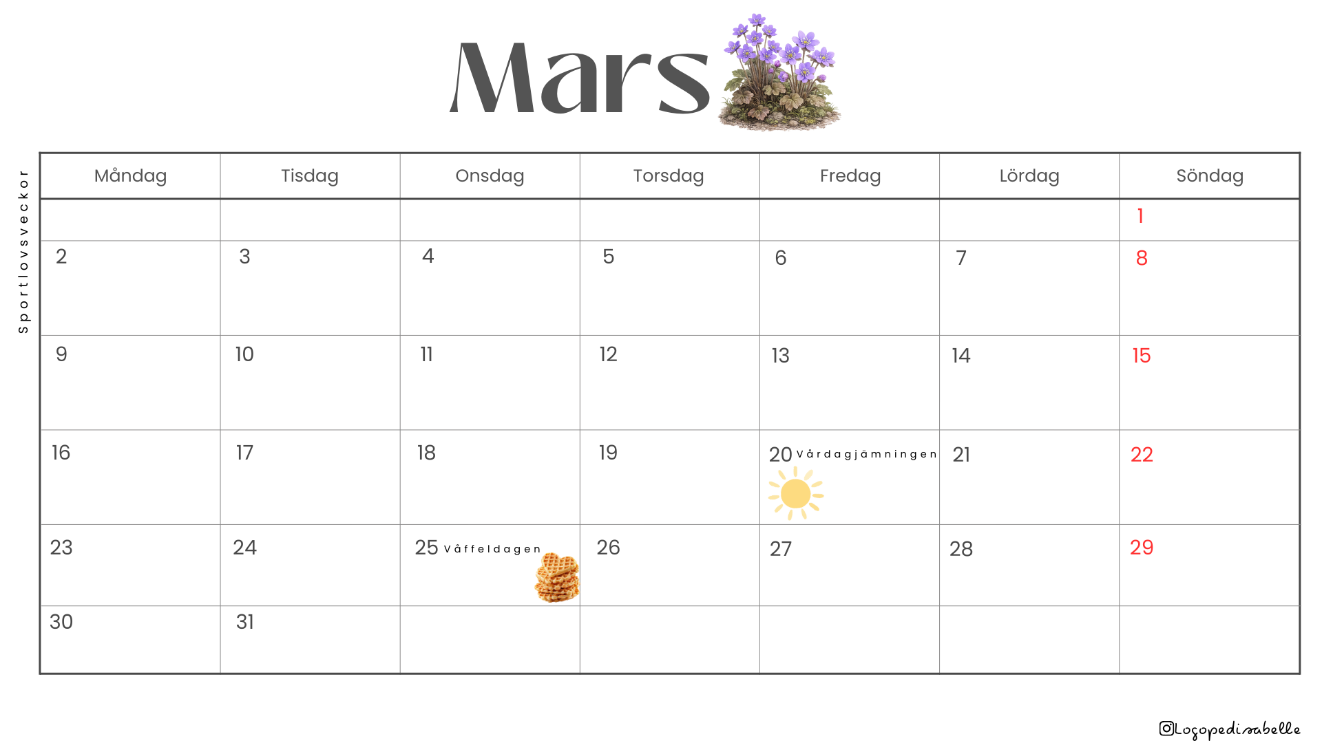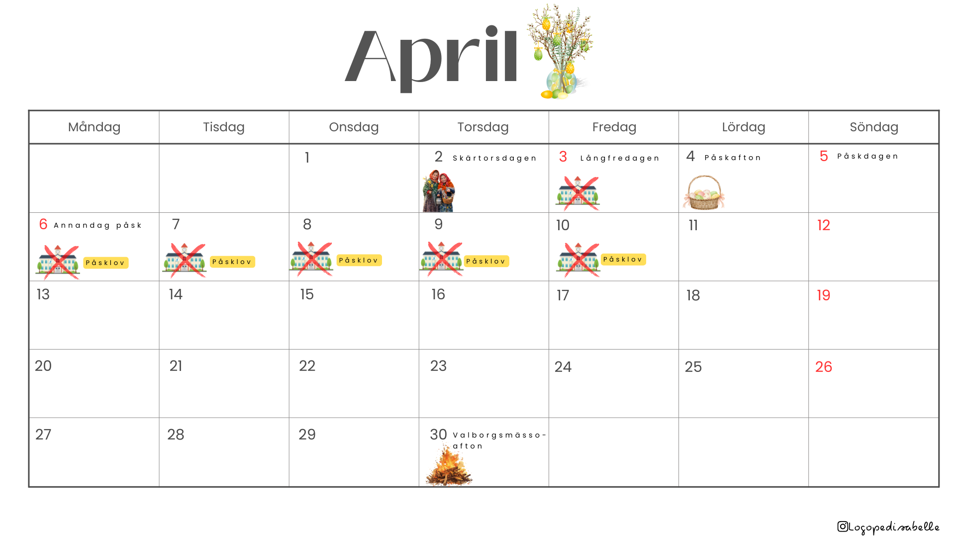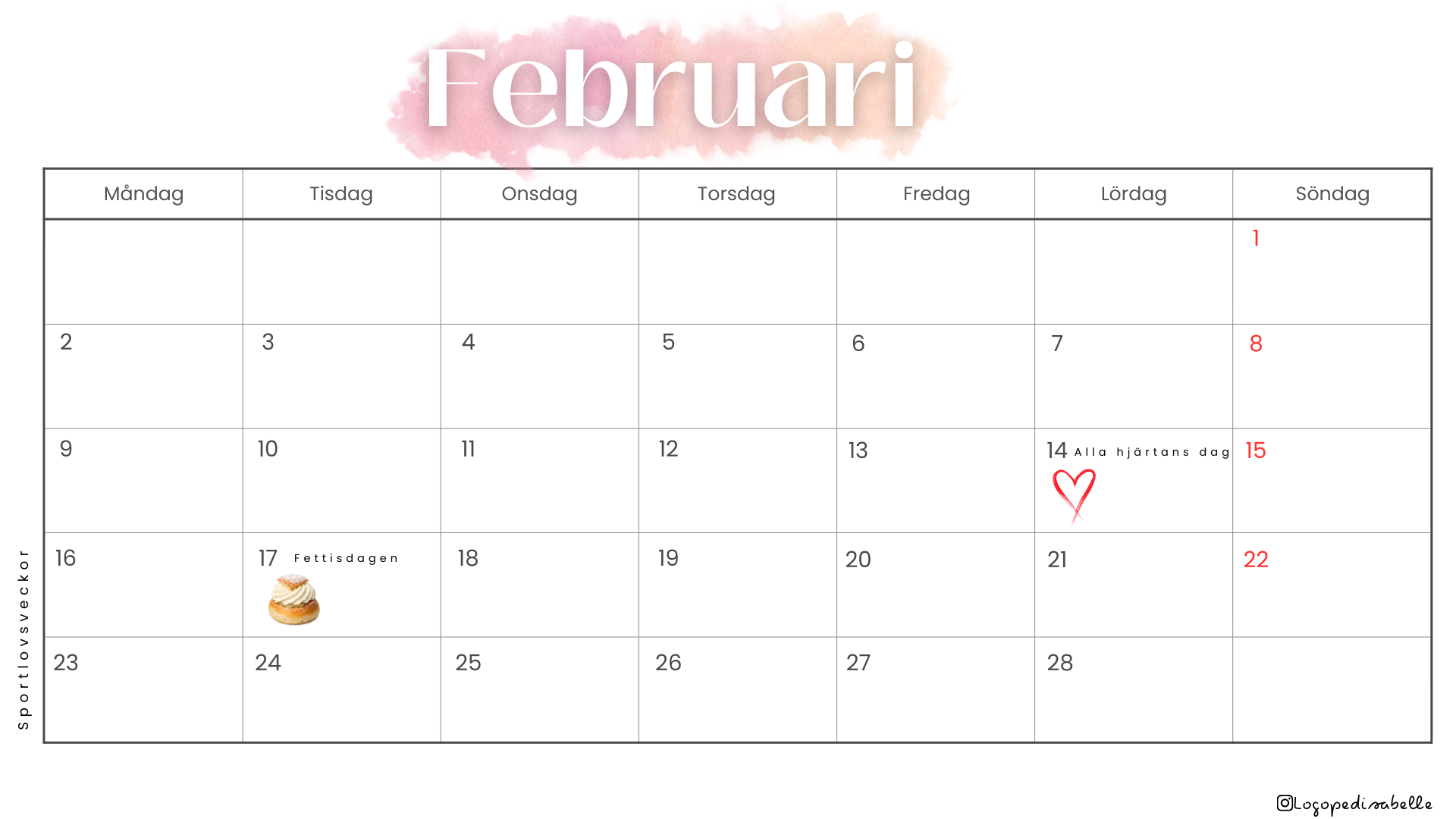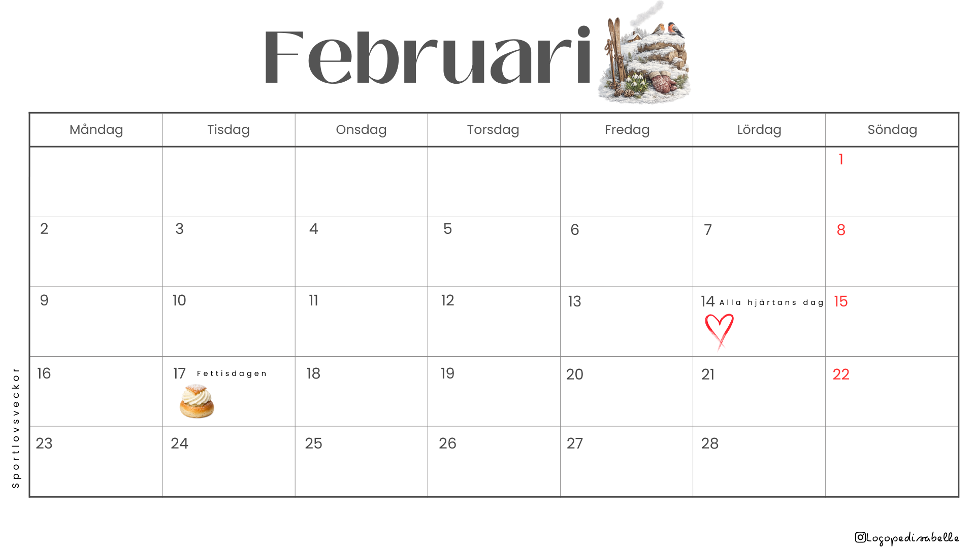 Månadskalender för 2026 för månadsöversikt att t.ex. sätta på kylskåpet. Två olika versioner att välja mellan: - en med bildstöd, bra för t.ex. personer med npf eller barn som inte kan läsa - en mer stilren version med bildstöd i mindre utsträckning